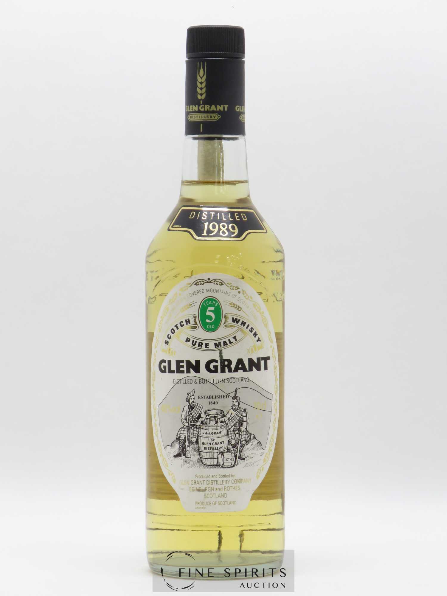 A Glen Grant 5 Year Old distilled in 1989. Glen Grant 5 Year Old has been a best-seller in Italy since its launch in the 1960s, notably thanks to the work of Armando Giovinetti, Glen Grants’’ Italian importer at the time. Back then, young whiskies, aged for just five or eight years, were commonplace. Similar examples include Clynelish 5 Year Old and Glenfarclas 5 Year Old.
