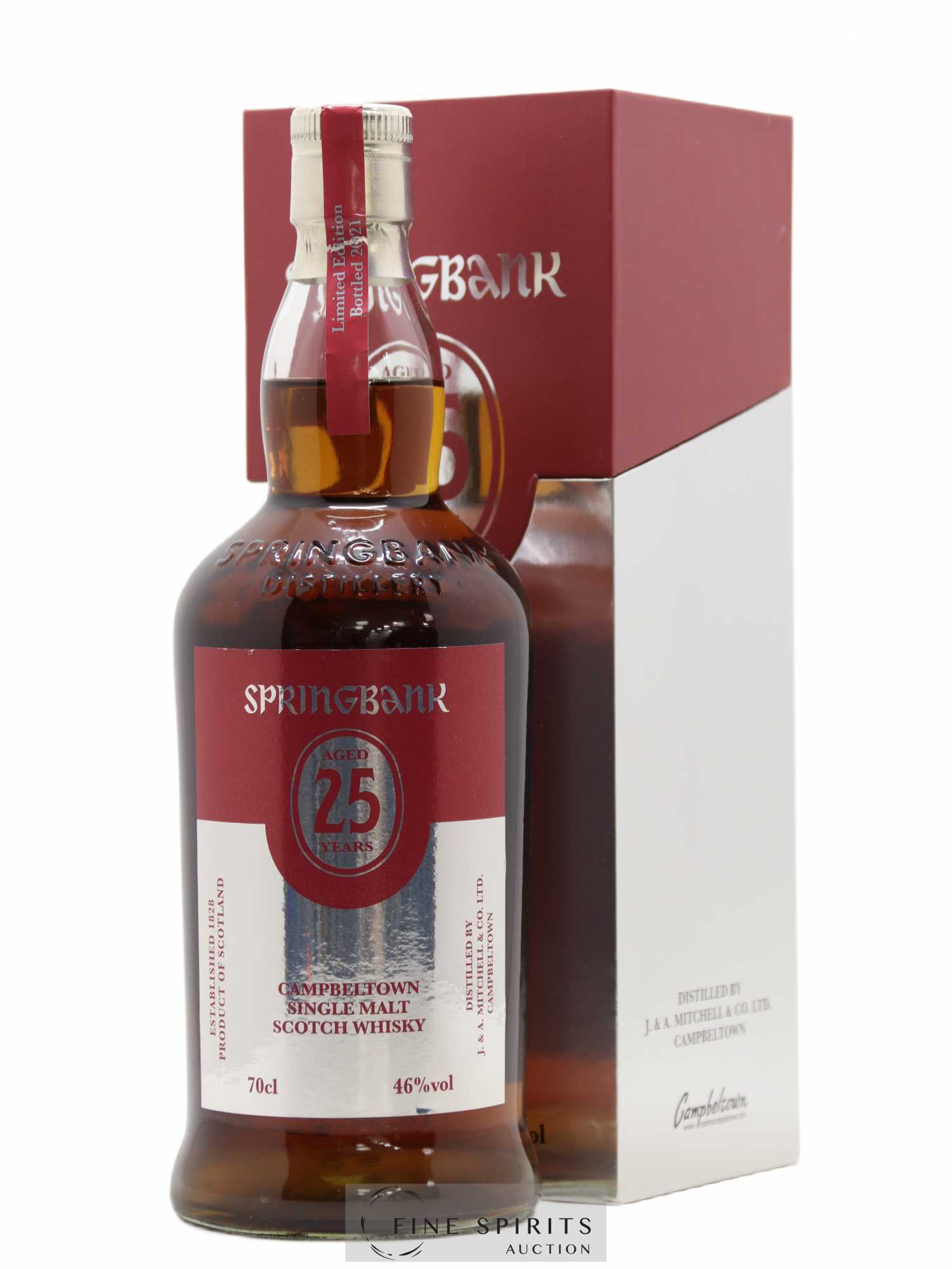 A 2021 edition of Springbank 25 Year Old composed of 75% sherry casks, 15% bourbon casks and 15% rum casks. A limited edition of 2,400 bottles.