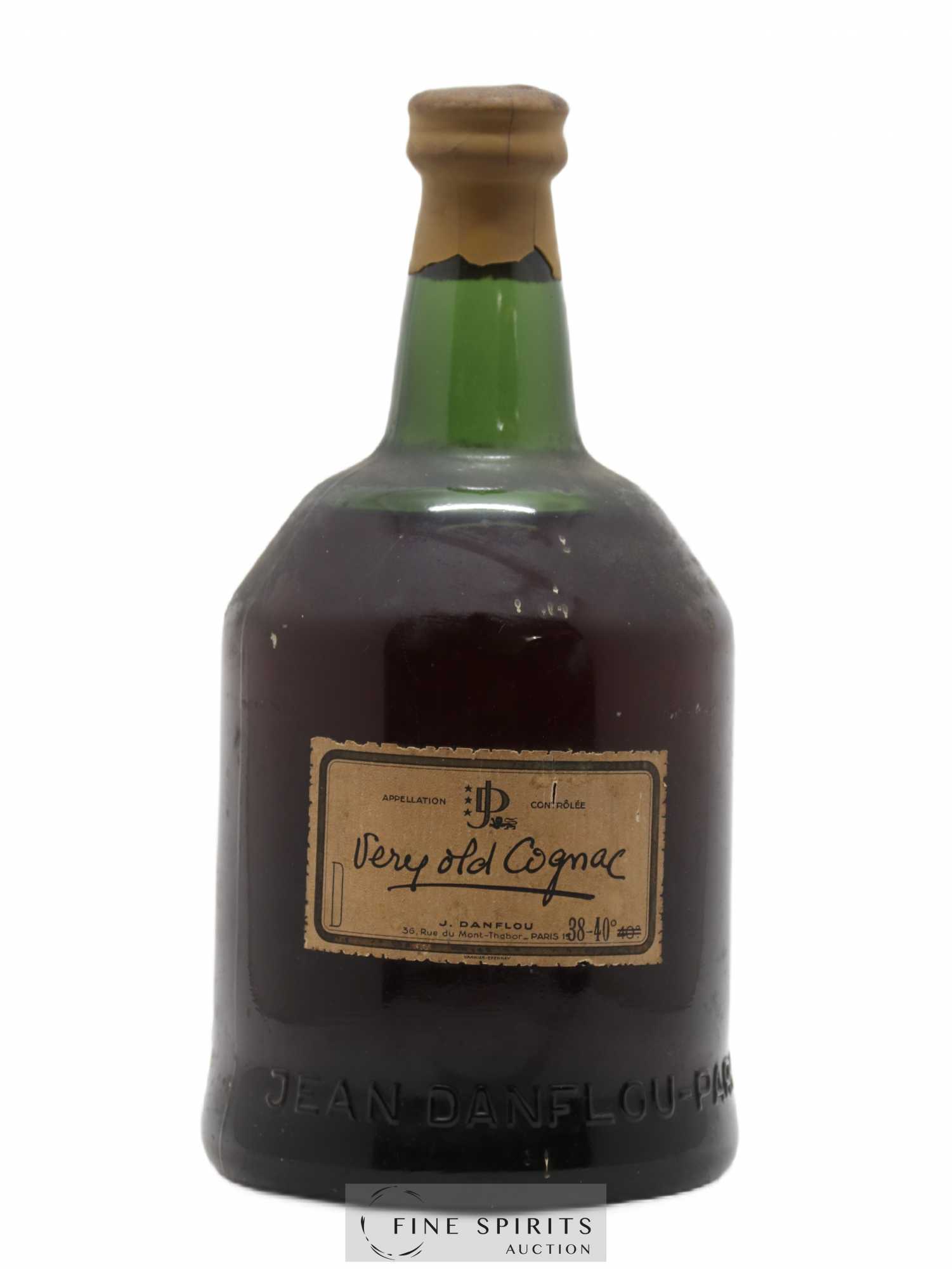 A very old cognac bottled by Jean Danflou, a negotiant based at Rue du Mont-Thabor, near Place de la Concorde in Paris, who bottles cognacs, armagnacs and fruit brandies. Note the bottling strength of 38% - 40%, which is below today’’s legal minimum. We estimate this bottle to be from the 1970s.