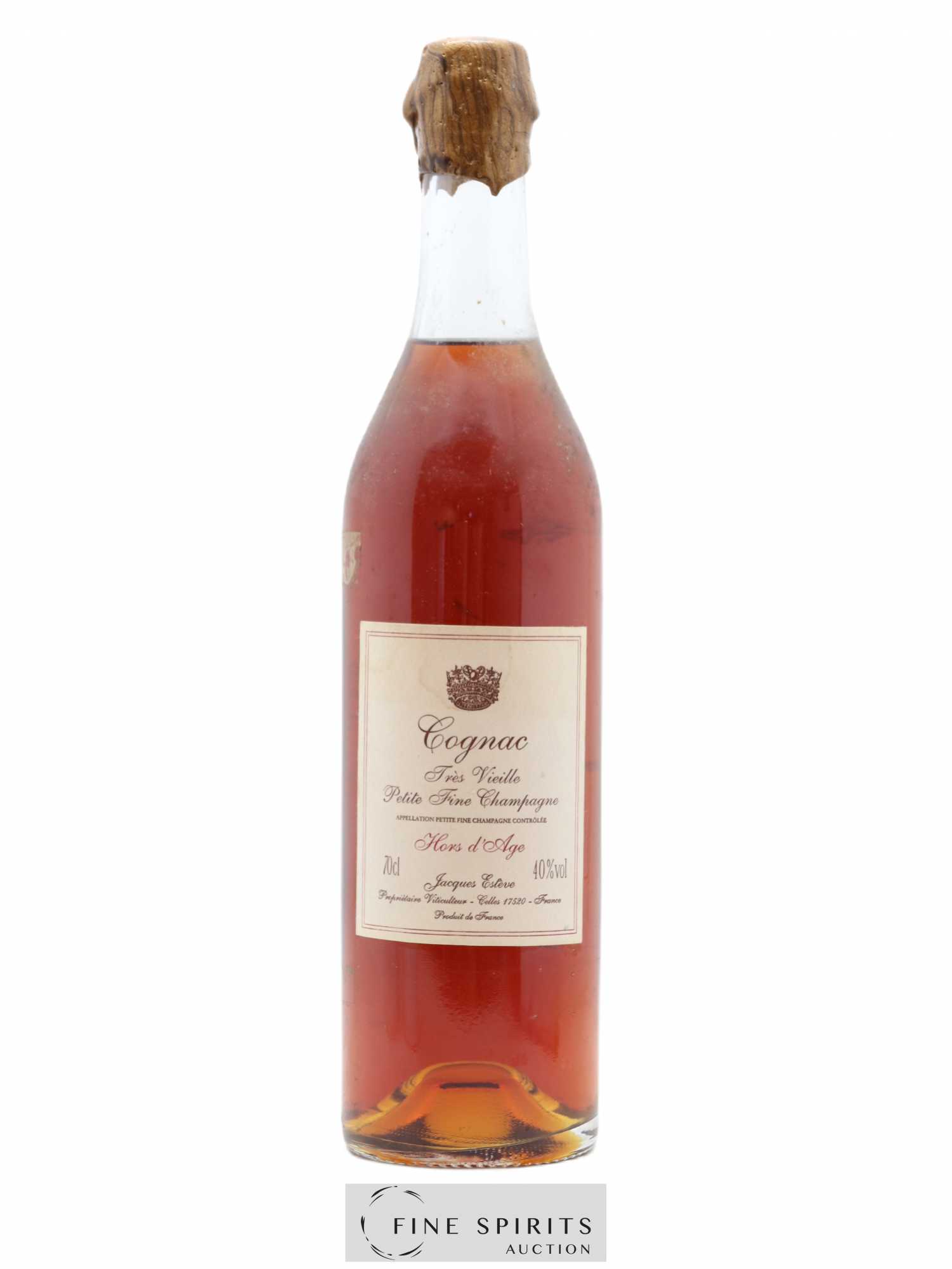 Cognac Famille Estève Très Vieille Petite Fine Champagne Hors d’’Âge is aged for at least ten years, although Estève cognacs are normally much older than the legal minimum.