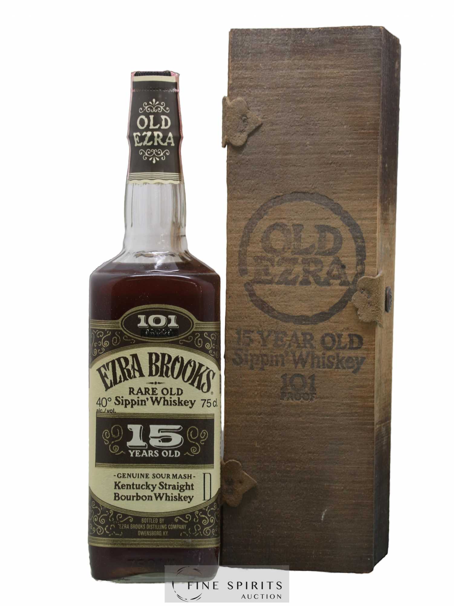 An Ezra Brooks 15 Year Old bottled in the late 1970s. It was produced at the Medley distillery, which had owned the brand since the Hoffman distillery ceased production in the 1970s. It was produced here until the early 1990s. Ezra Brooks is now distilled and bottled at Heaven Hill by the Luxco group.