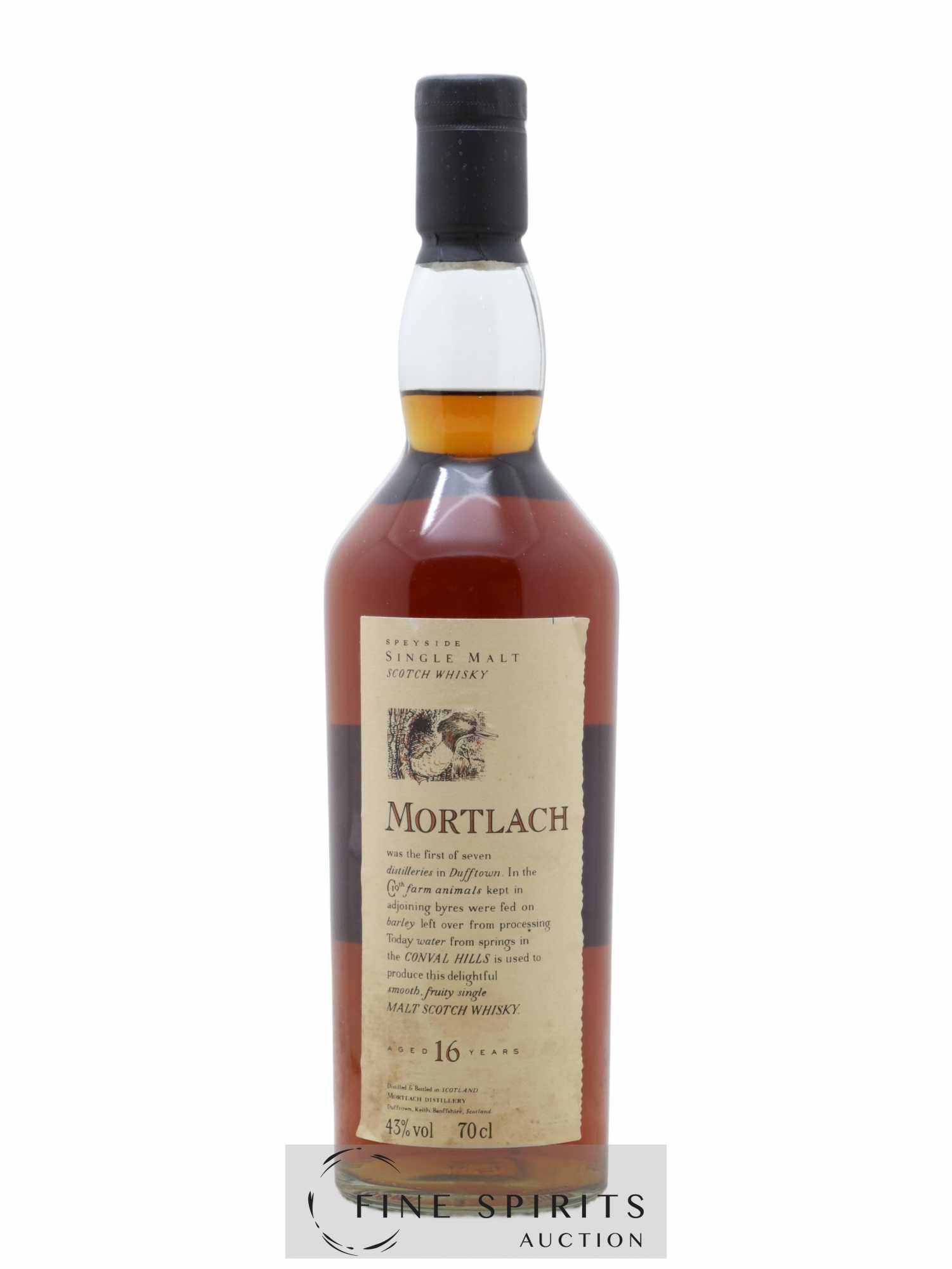 Scotland, Speyside. Distillery operational. Owner: DiageoJoining the John Walker & Sons team (Distillers Company Ltd) in 1925, Mortlach boasts a unique past in the history of Scotch whisky. Over some 20 years up until 1885, it was here that William Grant earned his stripes and learnt how to run a distillery before embarking on what would be a true story of success, the creation of the company William Grant & Sons, owner of Glenfiddich. Mortlach was also one of very few distilleries to be allowed to continue distilling during WWII (except in 1944). Finally, its aromatic profile is characterized by a special distillation method that almost verges on triple distillation. Whilst not large in number, several special bottlings of Mortlach are available aged 10 to 12 years old and presented in bottles and jugs. From the 1990s, it followed in the footsteps of all other United Distillers & Vintners distilleries and presented various versions in The Rare Malts Selection, Flora & Fauna and Manager's Dram ranges.