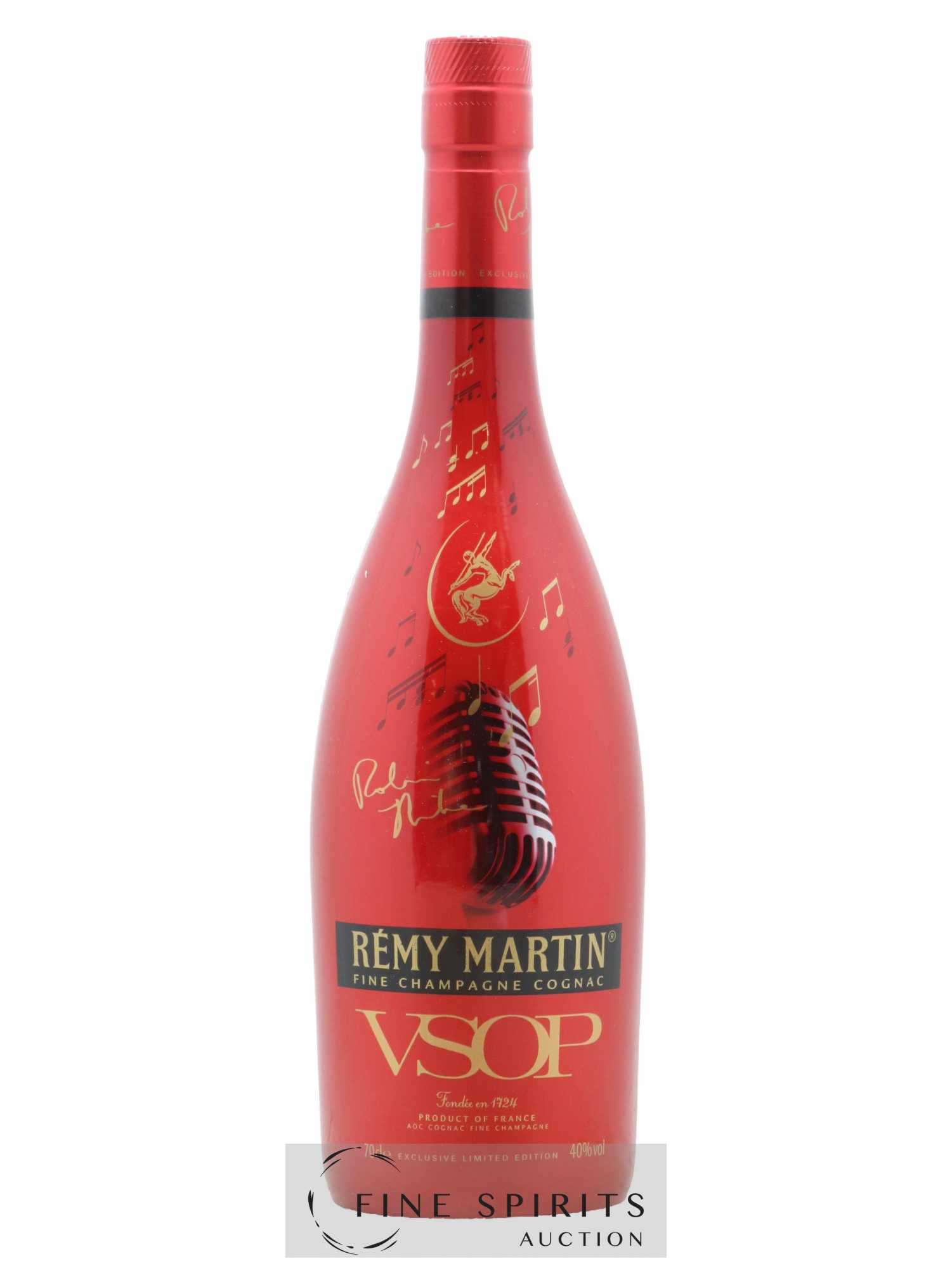 Rémy Martin V.S.O.P cognac (Very Superior Old Pale) was created in 1927 by André Renaud, the cellar master at the time. Already then it was a Fine Champagne, i.e. a blend of cognacs from Grande and Petite Champagne, the two most prestigious crus of the appellation. V.S.O.P. signifies that the cognacs have been aged for at least four years. This limited edition was created in collaboration with singer Robin Thicke.