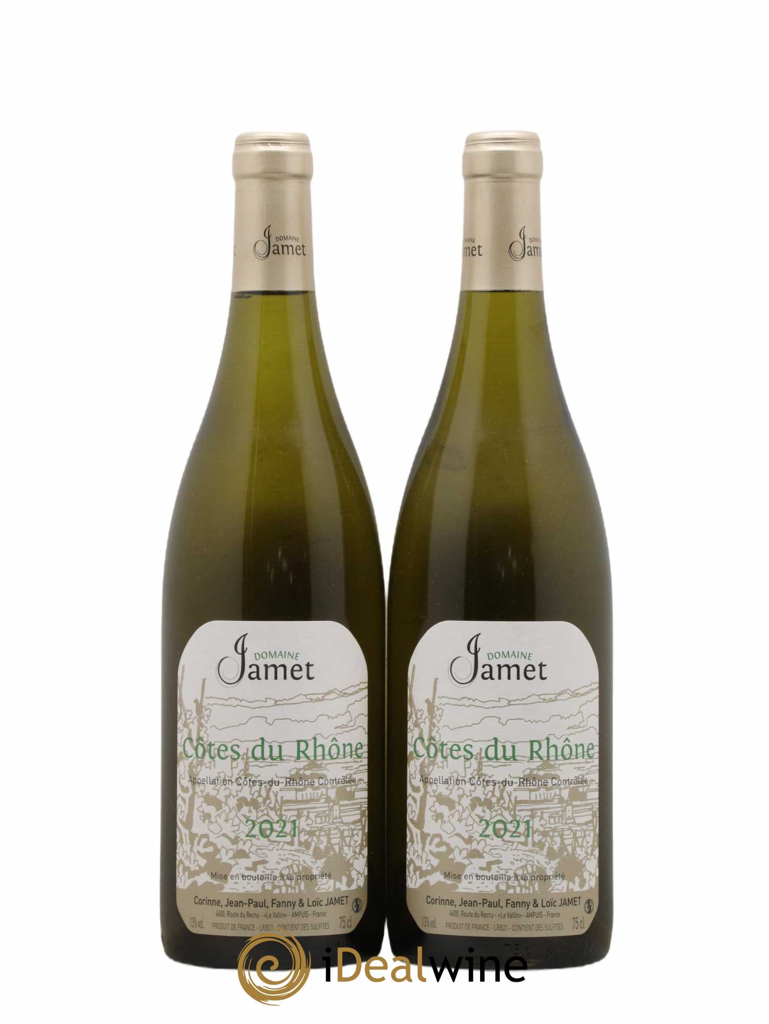 Quantity: 2 bottlesObservation: 2 NormalLevel: 2 NormalOrigin: private individualRecoverable VAT: noRegion: Rhone ValleyAppellation: Côtes-du-RhôneOwner: Jamet (Domaine)
