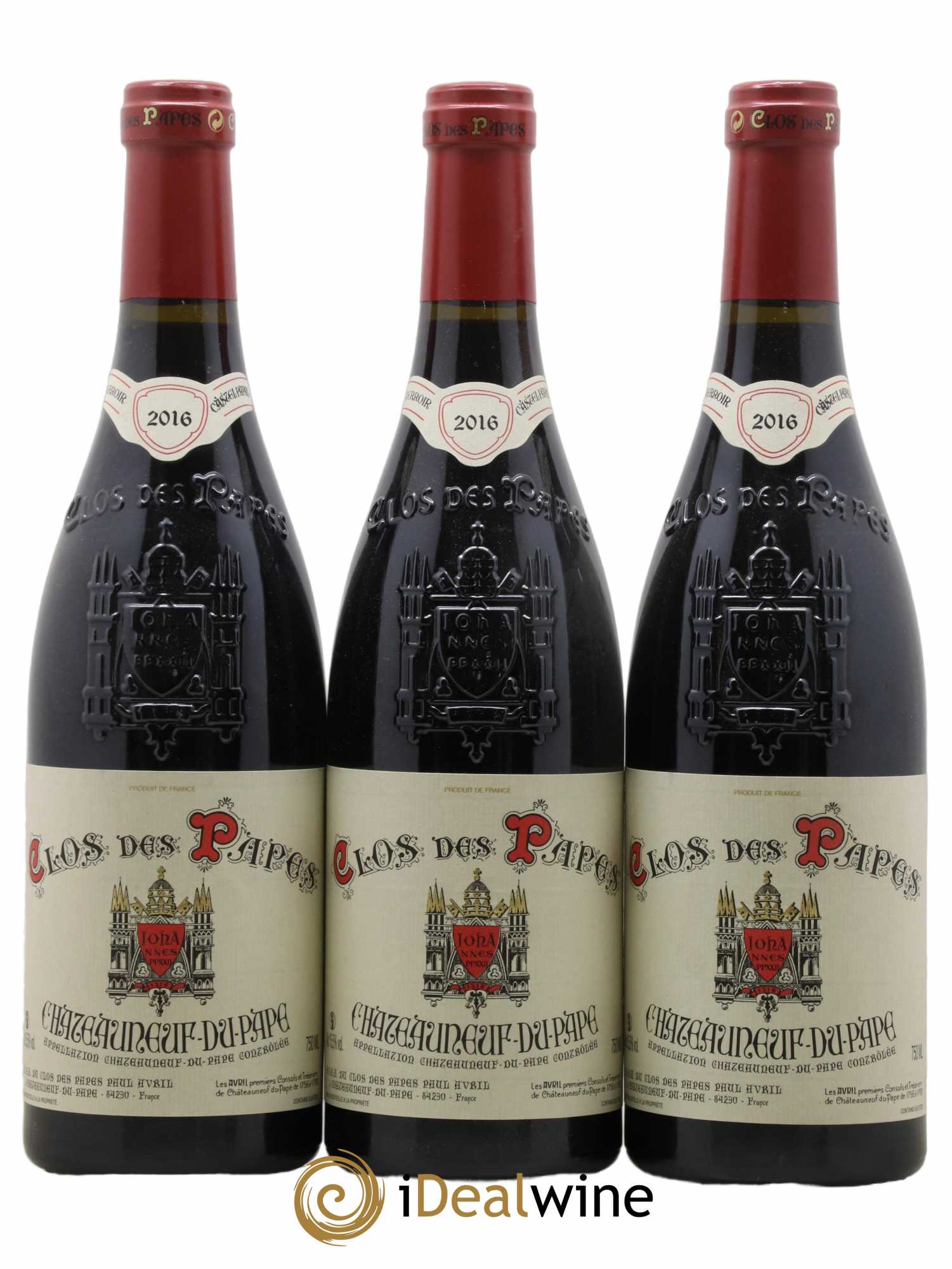 Quantity: 3 bottlesObservation: 3 Marginally marked labelsLevel: 3 NormalOrigin: private individualRecoverable VAT: noRegion: Rhone ValleyAppellation: Châteauneuf-du-PapeOwner: Clos des Papes - Paul Avril