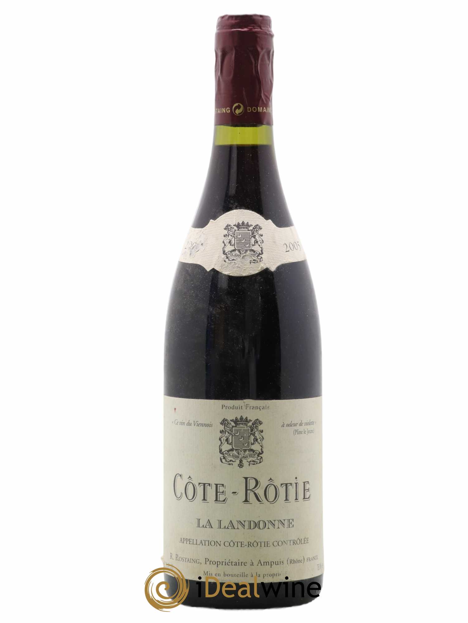 Quantity: 1 bottleObservations: 1 Slightly marked label, 1 Slightly damaged label, 1 Damaged capsuleLevel: 1 NormalOrigin: private individualRecoverable VAT: noRegion: Rhone ValleyAppellation: Côte-RôtieOwner: René Rostaing
