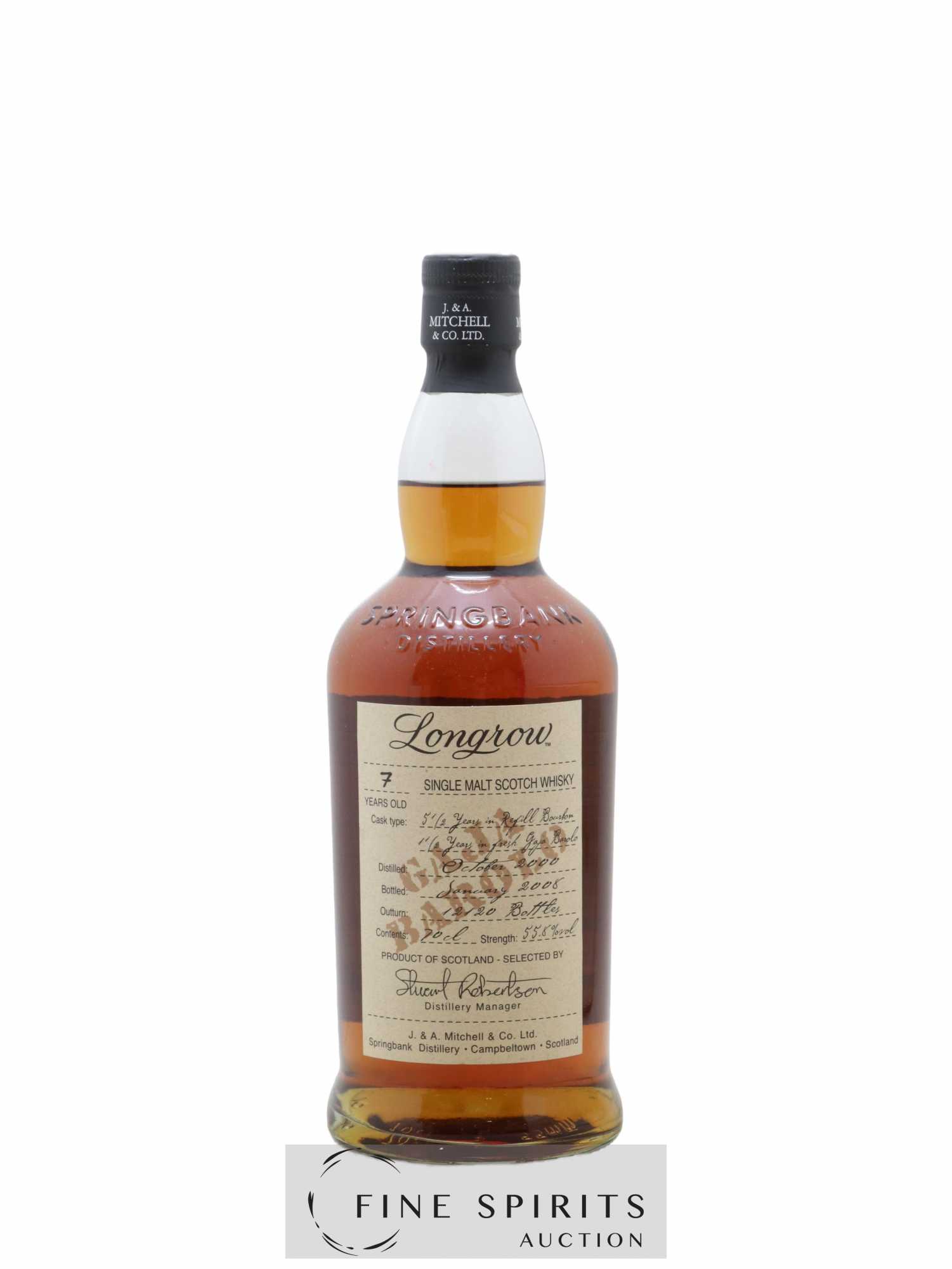 A Longrow 7 Year Old distilled in 2000 and bottled in 2008 for the Wood Expressions range. Matured for 5.5 years in bourbon casks and finished for 1.5 years in Barolo casks from Angelo Gaja. A limited edition of 12,120 bottles.