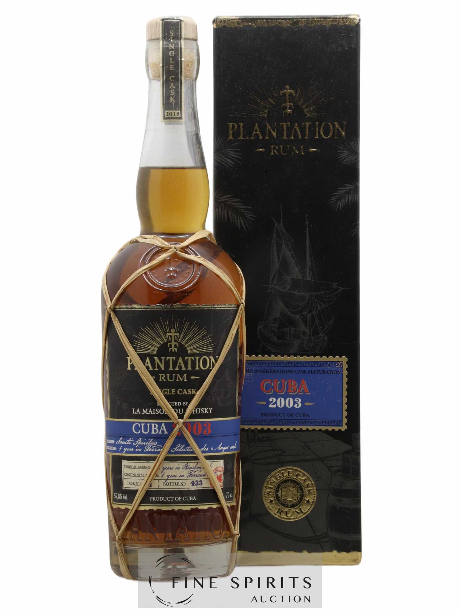A single cask bottling from the Sancti Spiritus distillery selected by La Maison du Whisky for its 2019 annual catalogue The Chronicles. It was aged in bourbon casks in a tropical climate for 13 years before being finished for one year in a Selection des Anges Cognac Ferrand cask.