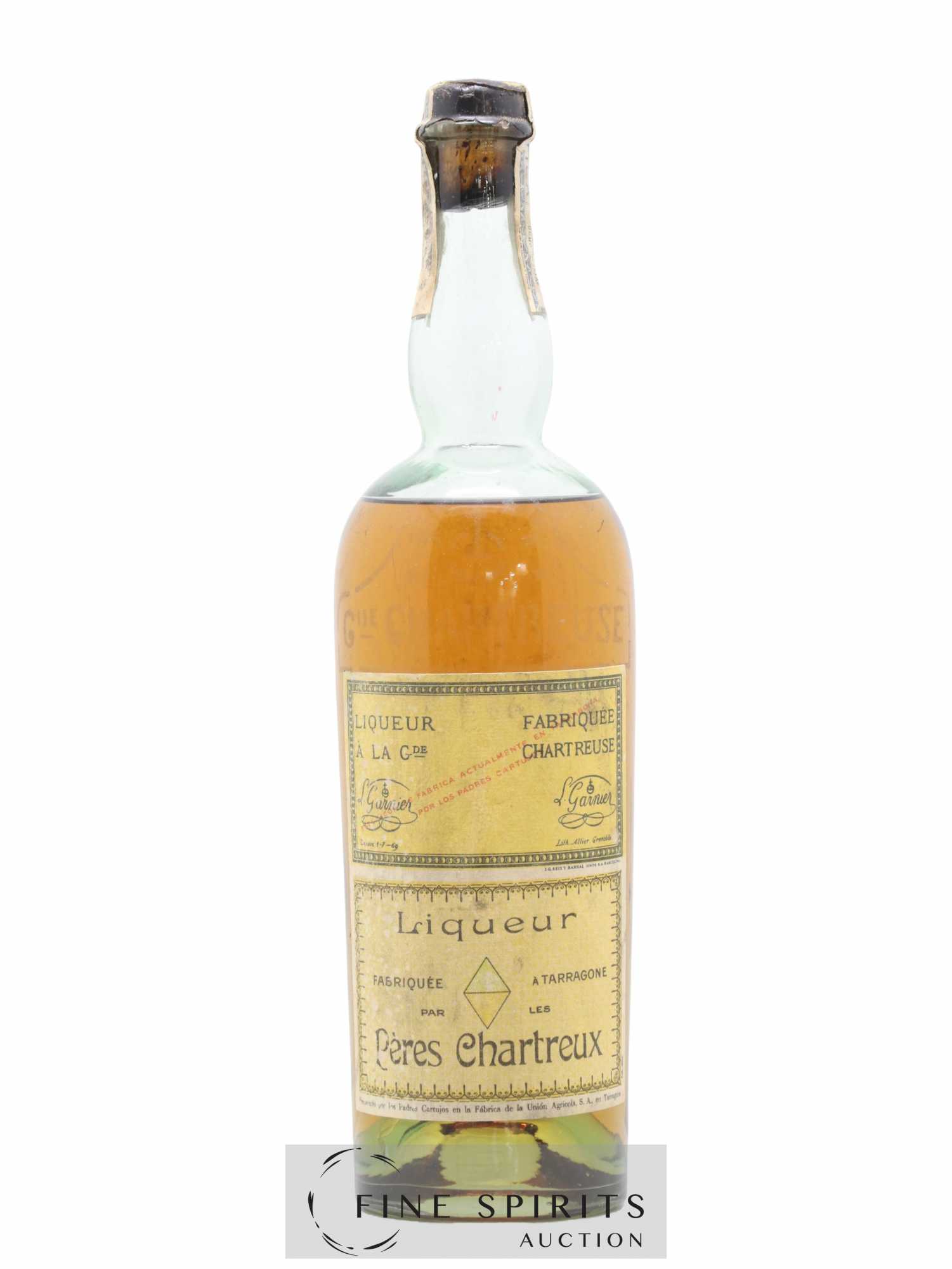 A bottle of Chartreuse produced for the export market between 1944 and 1957. This edition was produced in Tarragona, Spain, where the monks opened a distillery after being expelled from the Grande Chartreuse by the government of the Third Republic under Emile Combes, a fiercely anticlerical politician who came to power after the Bloc des Gauches’’ victory in the 1902 elections. Although the monks recovered their brand in 1929, the Tarragona distillery continued to operate until 1989. Bottles produced there are today highly prized by Chartreuse collectors.