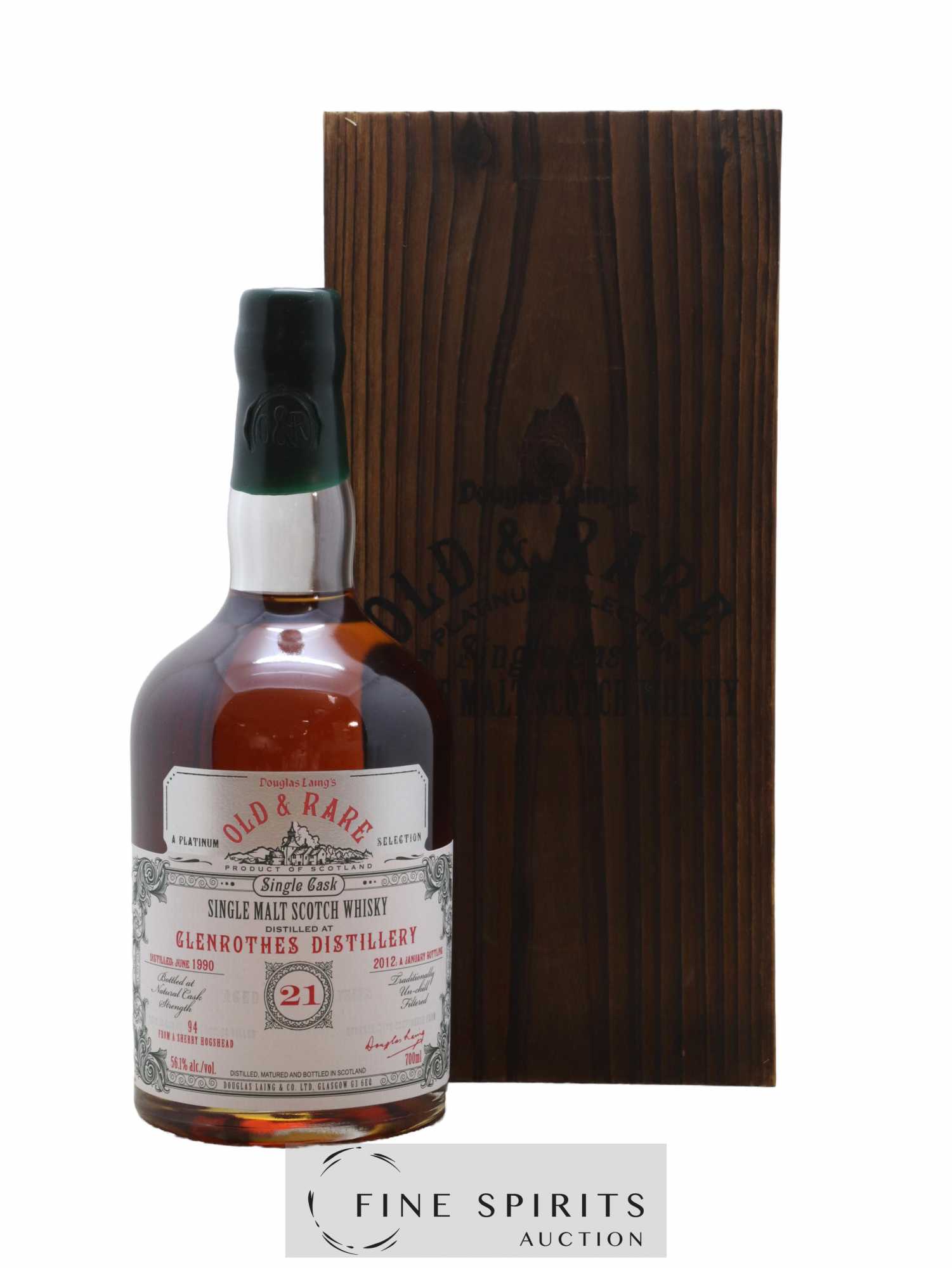 A Glenrothes single cask distilled in 1990, matured in a sherry hogshead and bottled by Douglas Laing in January 2012. Douglas Laing was founded in 1948 by Fred Douglas Laing, primarily as a blending company but also as an independent bottler, an activity which grew over the years. When Fred Douglas Laing died in 1982, his two sons Fred and Stewart took over the business. Stewart left in 2013 to set up Hunter Laing. Douglas Laing is today managed by Fred Laing and his daughter Cara. The Old & Rare series was first launched by Douglas Laing in 2001, before being picked up by Hunter Laing in 2013. A limited edition of 94 bottles.