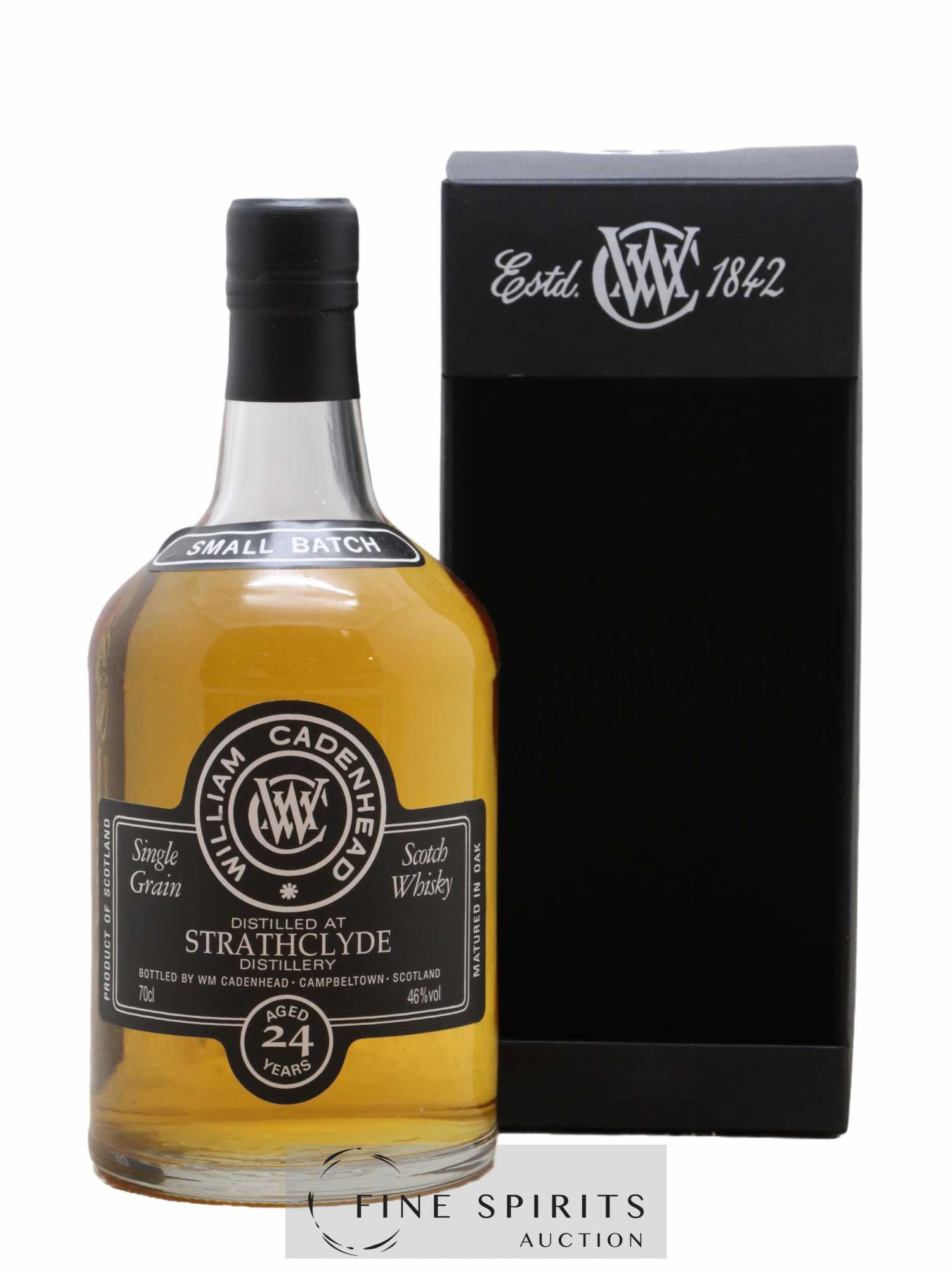 A Strathclyde 24 year old small batch distilled in 1989 and bottled by Cadenhead in 2013. Cadenhead was founded in 1842 by George Duncan. He was soon joined by William Cadenhead, who renamed the business following Duncan’’s death in 1858. When Cadenhead in turn passed away in 1904, his nephew Robert Duthie took over and turned the business into the independent bottler it is today. After Duthie, it was managed by one of his employees, Ann Olivier, whose stubborn approach to running the business led to much of the stock having to be sold at auction by Christie’’s (London) in 1972 to feed the kitty and save the business. It was then sold to J. & A. Mitchell and Co, who also owned Springbank, and moved to Campbeltown. A limited edition of 504 bottles.