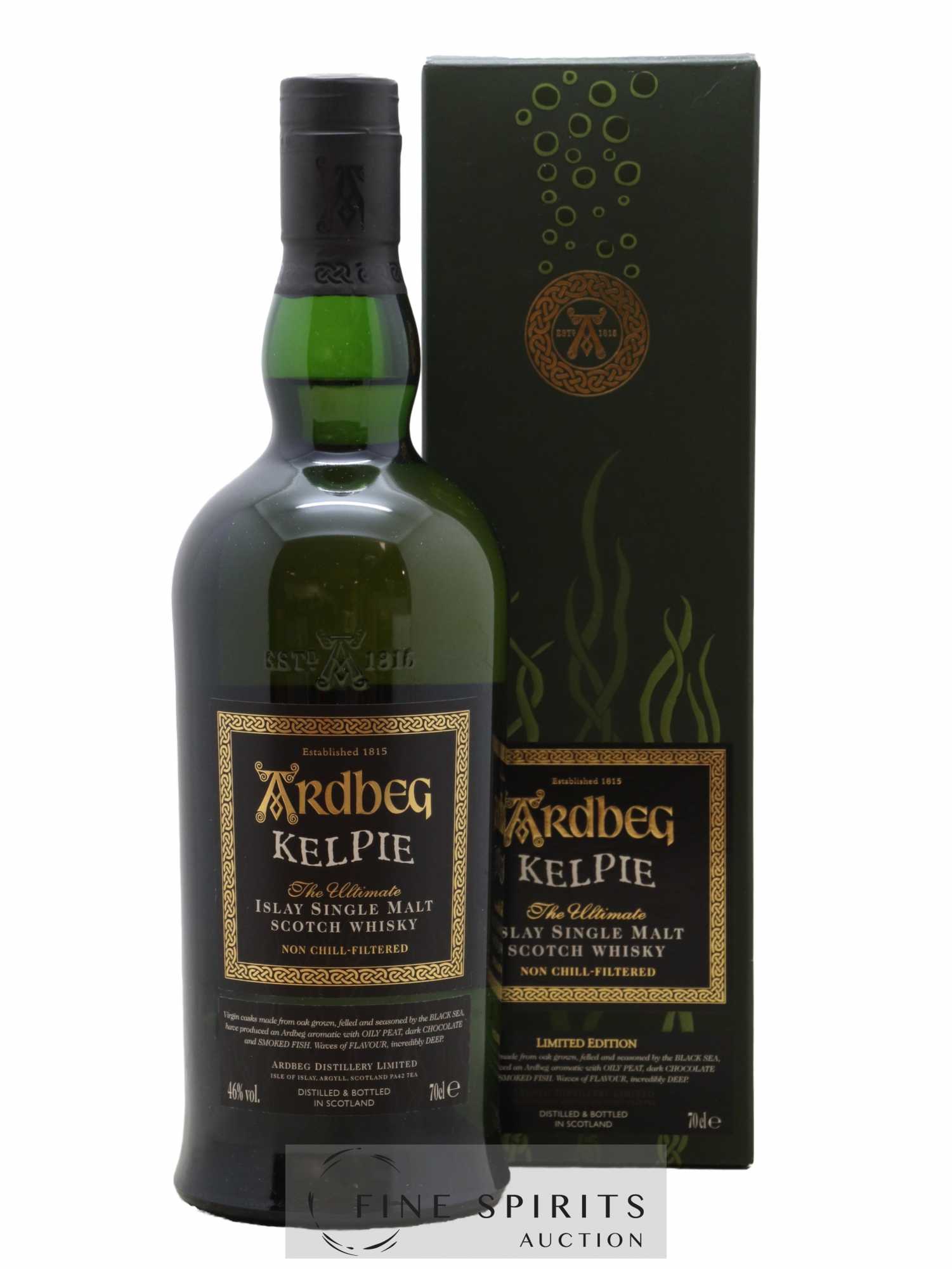 Every year, Ardbeg releases a new limited edition to celebrate Ardbeg Day, and Kelpie is the bottling for 2017. From the vaults and casks steeped in the refreshing sea breeze to the waves that crash against the port, the Ardbeg distillery has always had a close connection to the sea. Legend has it that many mysterious creatures live off the coast of Islay... Like the Kelpies, water beasts that take the form of a bull or horse, with hair of kelp and seaweed. This limited edition from the Ardbeg distillery was aged in virgin casks assembled from oak grown and felled near the Black Sea.