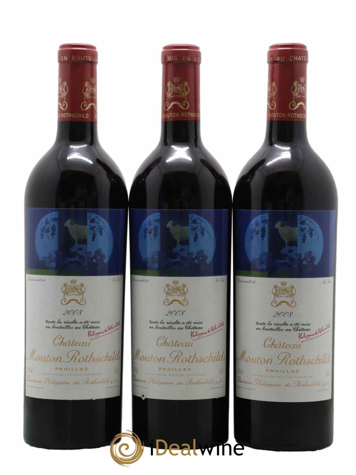Château Mouton Rothschild 1er Grand Cru Classé 2008 - Lot of 3 bottles - 0
