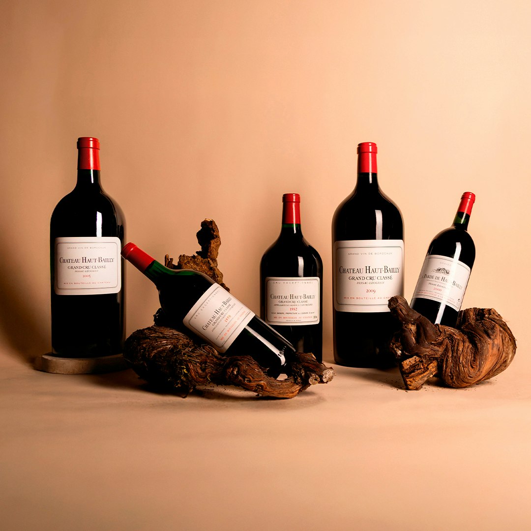 Ces enchères constituent une première pour le Château Haut-Bailly : découvrez une sélection de grands formats uniques : Impériales, Jéroboams, double Magnums et Magnums, issus directement des caves de la propriété.