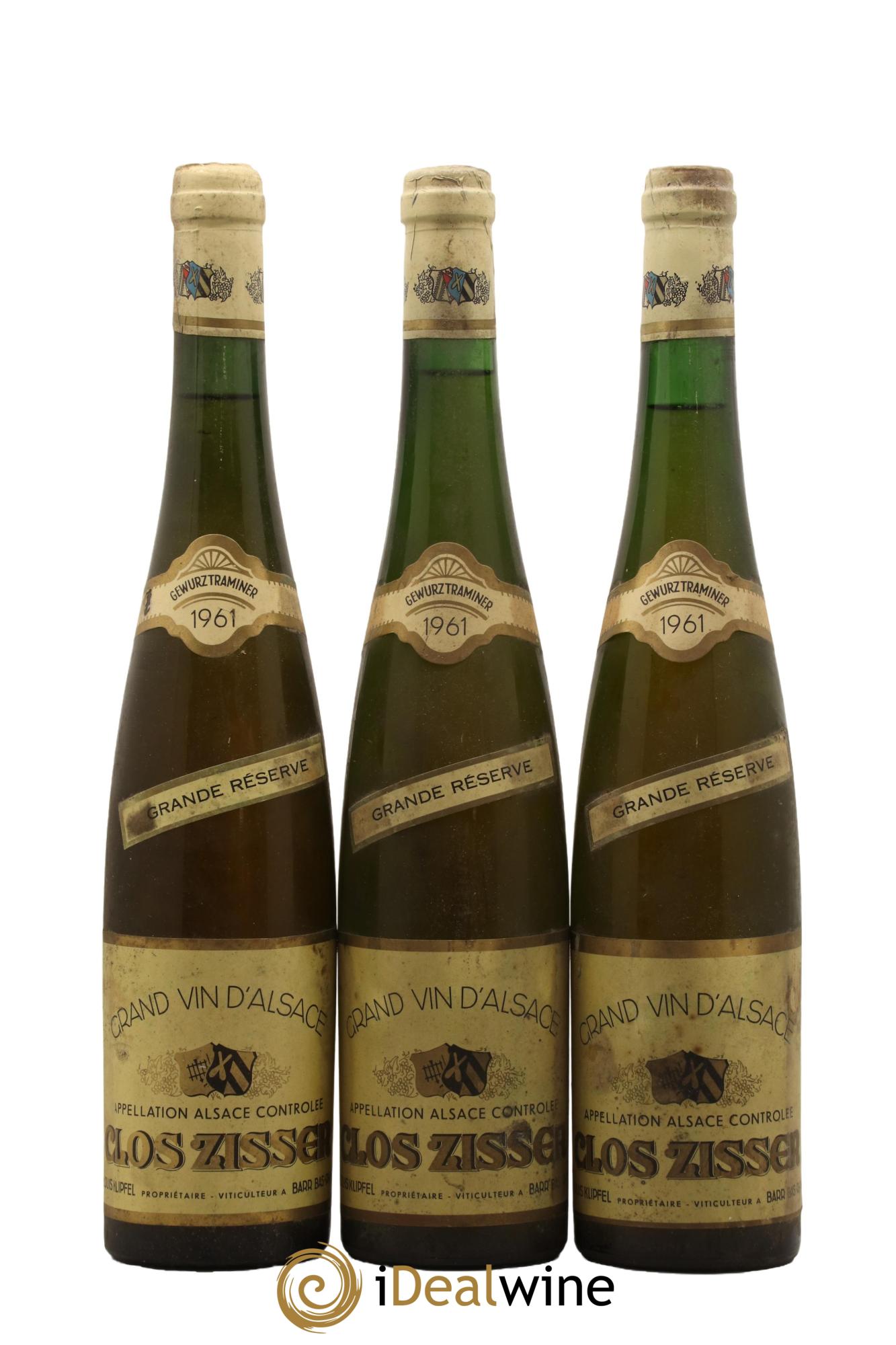 Accueil / Acheter vins / Alsace / Gewurztraminer Clos Zisser Grande Réserve Louis Klipfel 1961 - Lot de 3 bouteilles