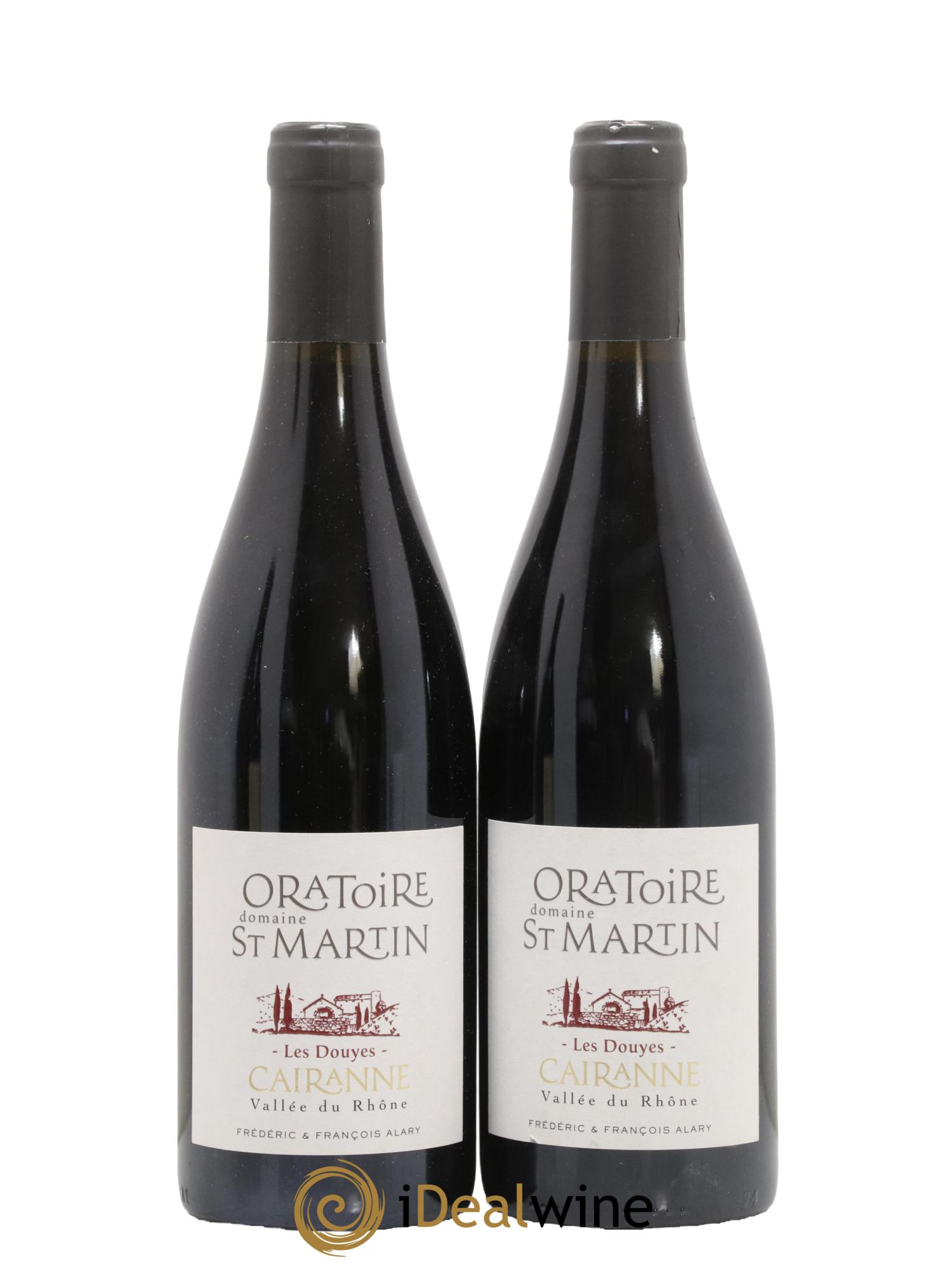 Frédéric et François Alary, aux commandes depuis 1984 du domaine de l'Oratoire Saint-Martin, représentent la dixième génération à la tête de ce vignoble ! La majeure partie du domaine est située au nord-est de la commune de Cairanne, à 200 mètres d'altitude sur des collines escarpées dans une zone appelée communément « la montagne ». Il s'agit des quartiers les Douyes et Saint-Martin. Dans les vignes, le travail est très méticuleux, en bio et biodynamie (certifié), à faible rendement (certaines vignes sont plus que centenaires) et les récoltes se font à parfaite maturité. Les élevages se font en cuve béton, en demi-muids ou en foudres. Ce domaine est clairement le meilleur représentant de l'appellation Cairanne (avec le domaine Richaud), une référence absolue ! Les pentes des coteaux sont parfois tellement marquées que l'emploi de tracteurs à chenilles est souvent indispensable. C'est un terroir très caillouteux d'argile jaune en surface et d'argile bleue en profondeur avec un pourcentage de calcaire actif très important. Les blancs sont principalement composés de marsanne, roussanne, clairette et grenache blanc.