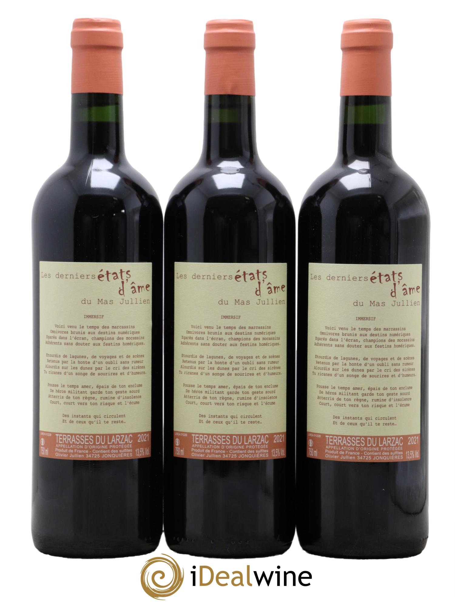 Ce domaine, fondé en 1985, a été l'artisan de la relance des grands vins du Languedoc et plus particulièrement des appellations Coteaux du Languedoc et Terrasse du Larzac. Produits dans un style concentré, digeste et savoureux, les vins d'Olivier Jullien se départissent de toute l'austérité de leur jeunesse après une longue garde. Cette longue garde les fait briller de mille-feux, ajoutant aux épices et aux senteurs de garrigues ceux du temps qui passe et fait son oeuvre dans les grands vins. Cette cuvée, composée de syrah, de mourvèdre, de carignan et de grenache noir, révèlent des arômes de fruits noirs en jeunesse, mâtinés d'épices et de garrigues. Le charme de sa jeunesse et son accessibilité ne doivent pas faire oublier que ce vin, dont on dirait qu'il est taillé dans la roche tant sa constitution est vigoureuse, est fait pour la longue garde.