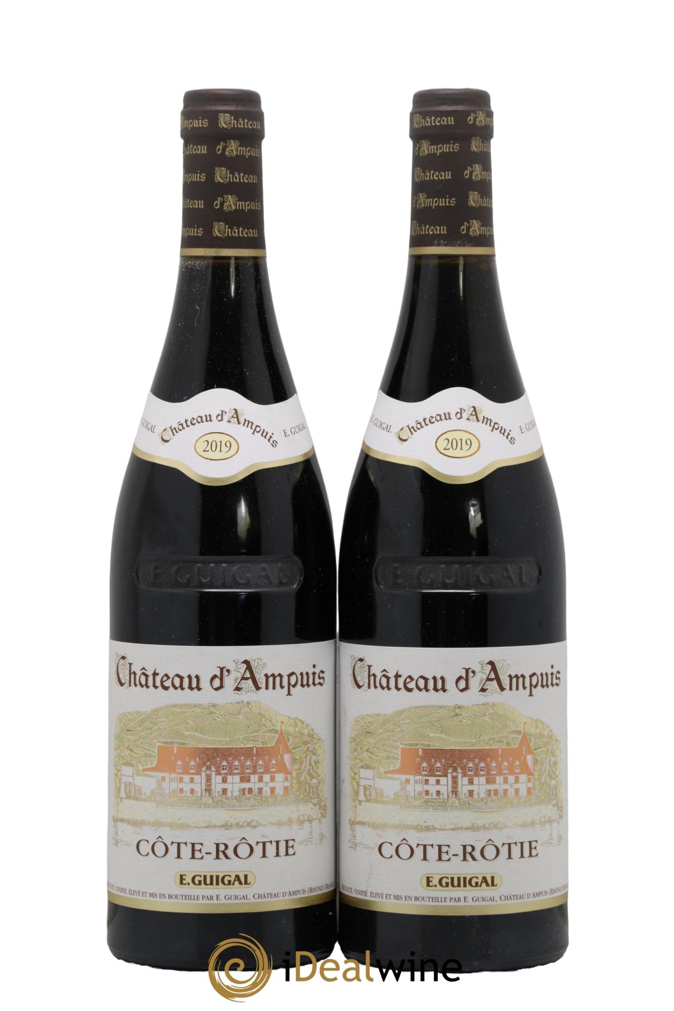 Elaborée depuis le millésime 1995, la cuvée Château d'Ampuis porte le nom d'une propriété acquise et rénovée par Marcel Guigal. Figurant parmi les « Trésors » de la maison Guigal, elle est issue de vignes d'un âge moyen de 35 à 40 ans, implantées sur sept terroirs d'exception en Côte-Rôtie. Les vendanges, les plus tardives possibles, sont suivies d'une période de fermentation en cuves inox, puis d'un élevage de 38 mois en fûts de chêne neuf. Le Château d'Ampuis présente une robe sombre et très profonde. Ce vin tannique et racé développe au nez des arômes d'épices, de petits fruits rouges, suivis en bouche de saveurs de pruneaux, de mûre et de vanille. D'une belle ampleur, nous percevons combien l'élevage intègre les tanins.