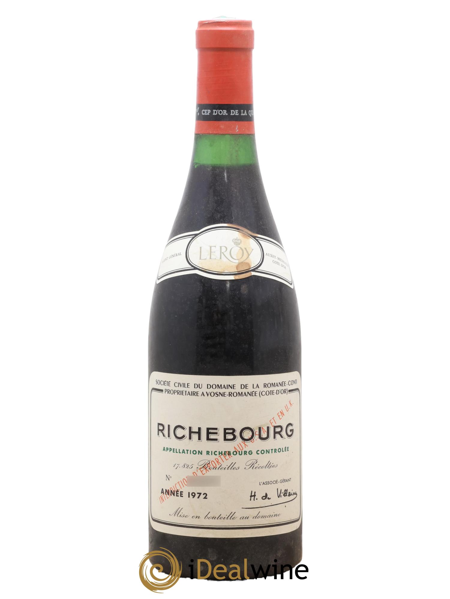 Richebourg Grand Cru Domaine de la Romanée-Conti 1972 - Lot de 1 bouteille - 0