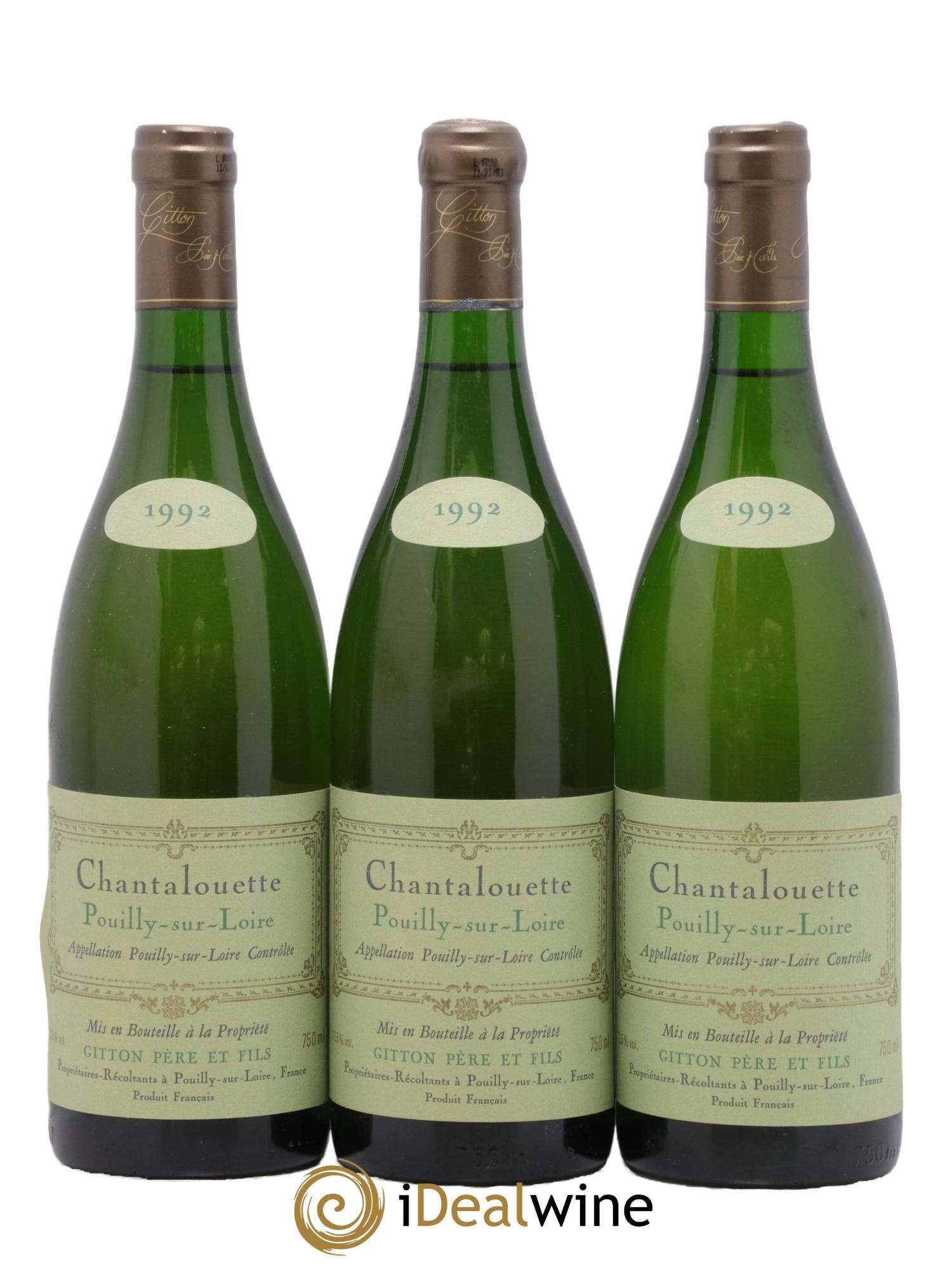 Pouilly-sur-Loire Les Chantalouettes Gitton 1992 - Lot de 3 bouteilles - 0