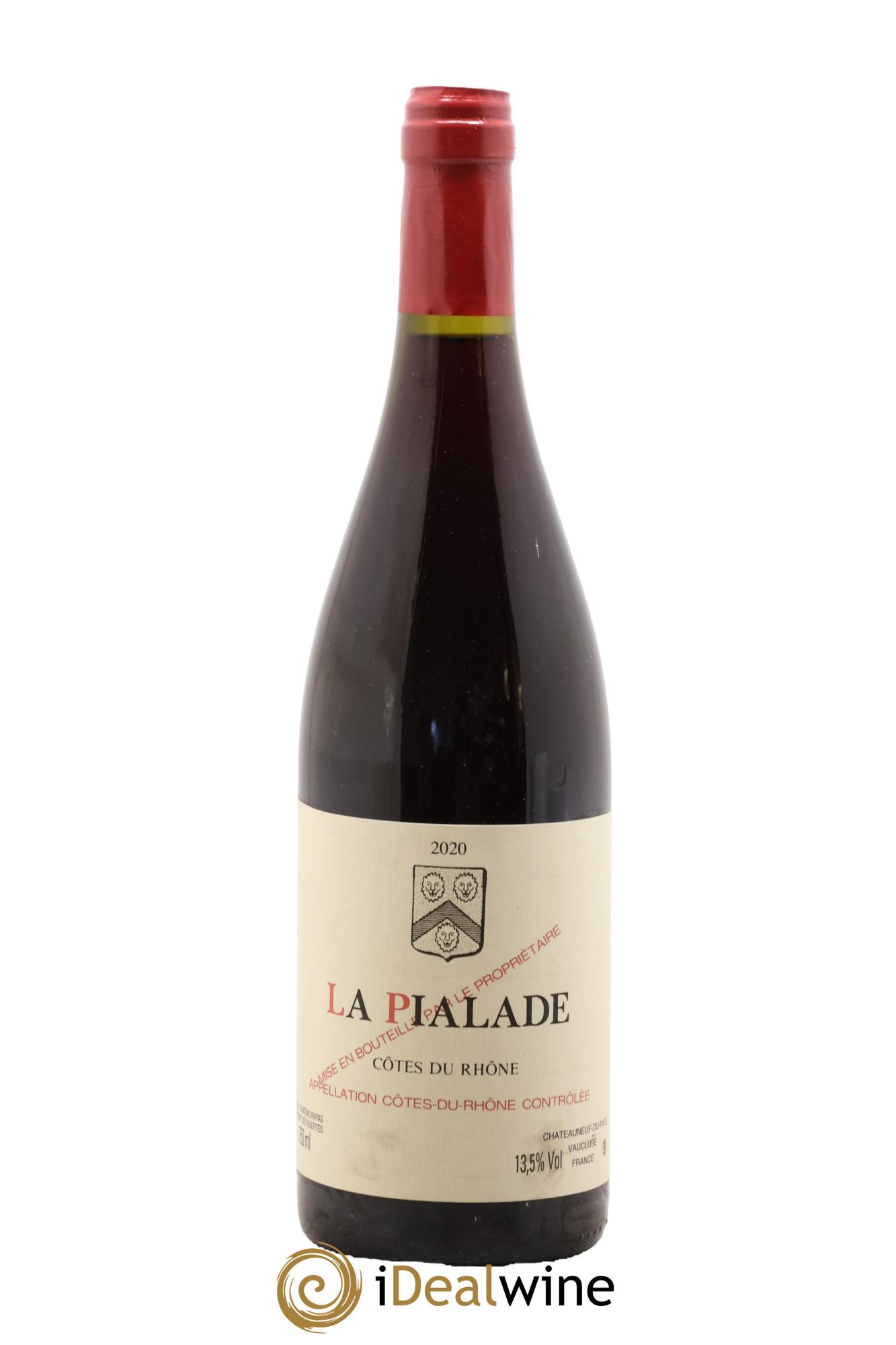 La Pialade est un des Côtes du Rhône du mythique Château Rayas à Châteauneuf-du-Pape. Jacques Reynaud a longtemps produit des vins d'exception sur ce terroir unique et cette qualité est aujourd'hui perpétuée par son neveu Emmanuel Reynaud. Révélant à la dégustation des arômes de fruits rouges confiturés, le Côtes du Rhône La Pialade est ample tout en restant raffiné et élégant. Ce vin réunit les raisins de Rayas et de Fonsalette qui, selon Emmanuel Reynaud, ne méritent pas de faire de grand vin. C'est donc son « petit vin » … et pourtant il se révèle incroyable. Un rapport qualité-prix dément.