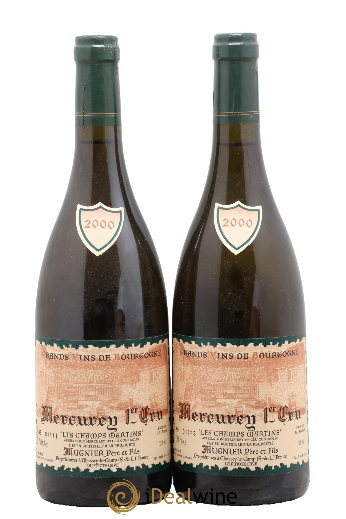 Accueil / Acheter vins / Bourgogne / Mercurey 1er Cru Les Champs Martins Mugnier 2000 - Lot de 2 bouteilles