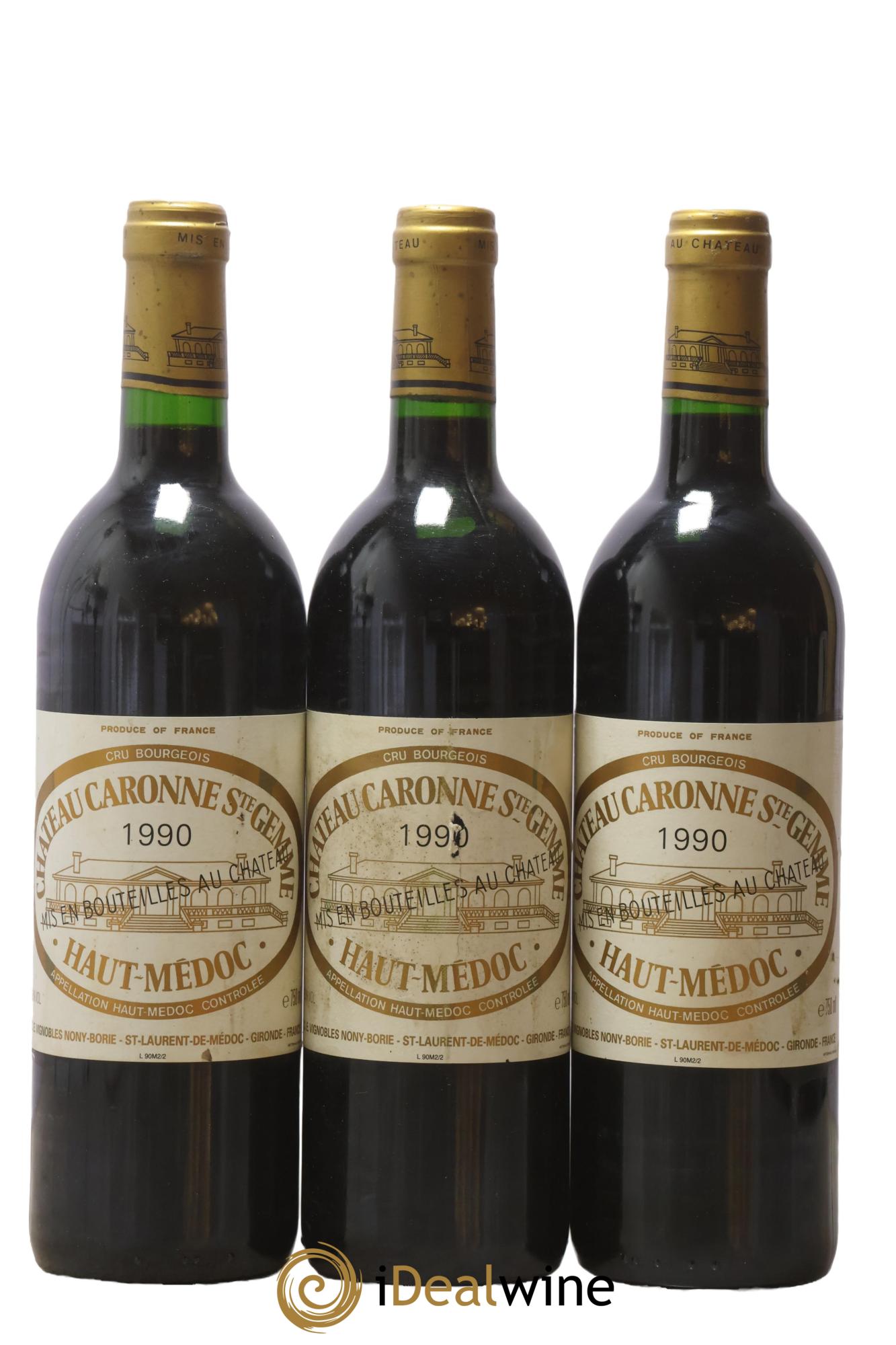 Château Caronne Sainte-Gemme Cru Bourgeois 1990 - Lot de 3 bouteilles - 0