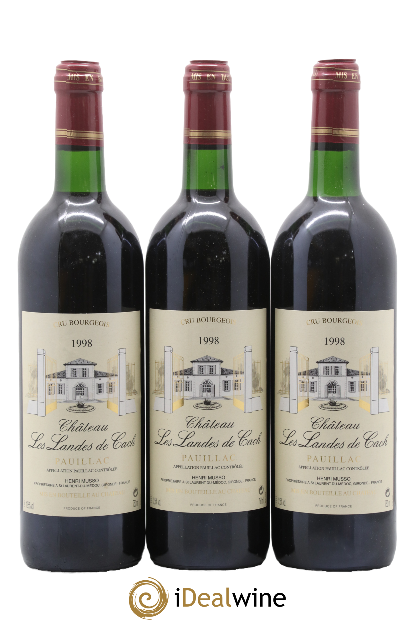 Pauillac Château Les Landes De Cach 1998 - Lot de 3 bouteilles - 0
