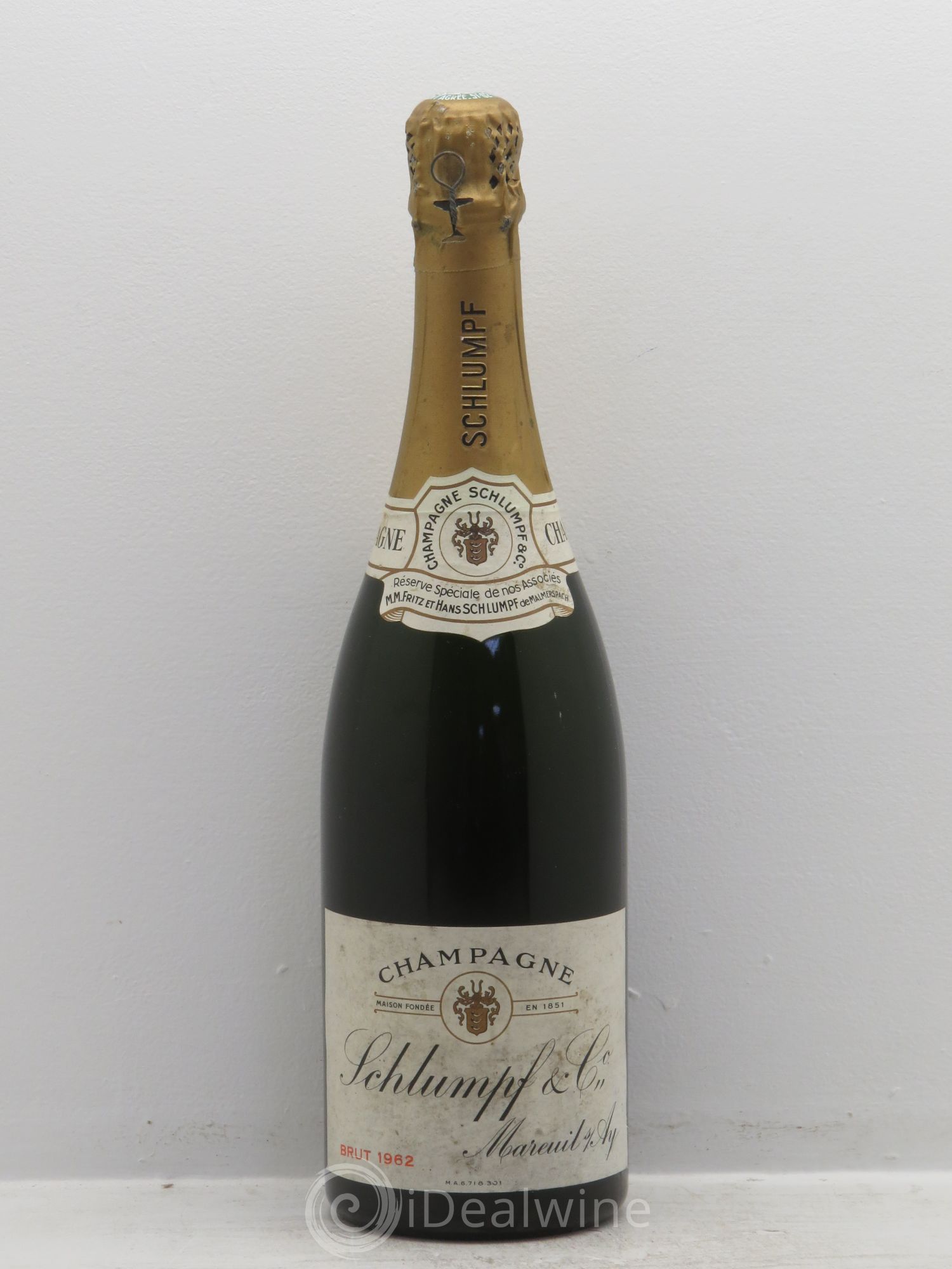 Champagne Schlumpf brut Réserve spéciale de nos associés MM Fritz et Hans Schlumpf (sans prix de réserve) 1962