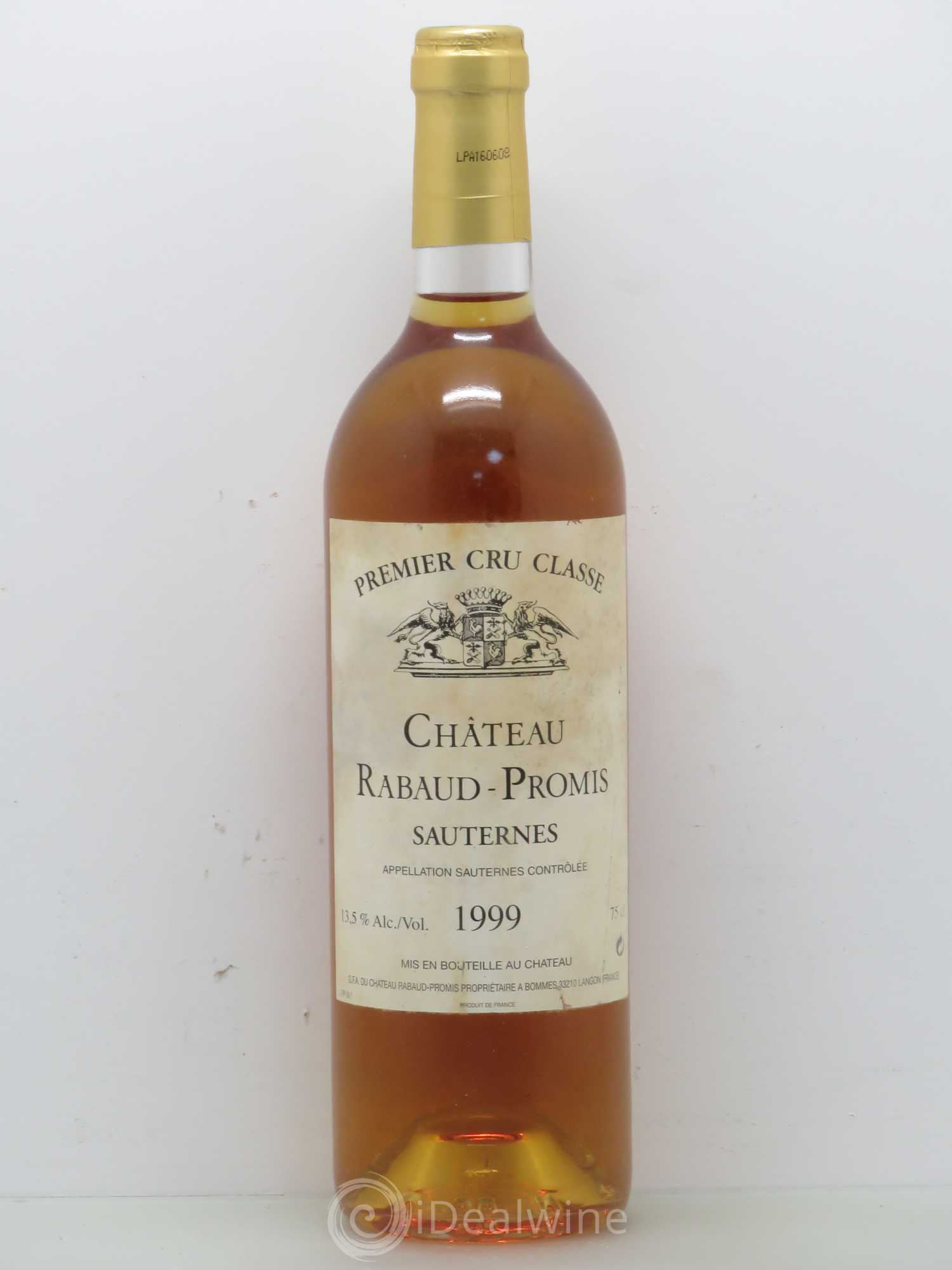 Plus d'infosQuantité : 1 bouteilleObservations : 1 Étiquette légèrement abimée, 1 Étiquette marquéeNiveau : 1 NormalProvenance : particulierTVA récupérable : nonRégion : BordeauxAppellation : SauternesClassement : 1er Grand Cru ClasséPropriétaire : GFA du Château Rabaud Promis