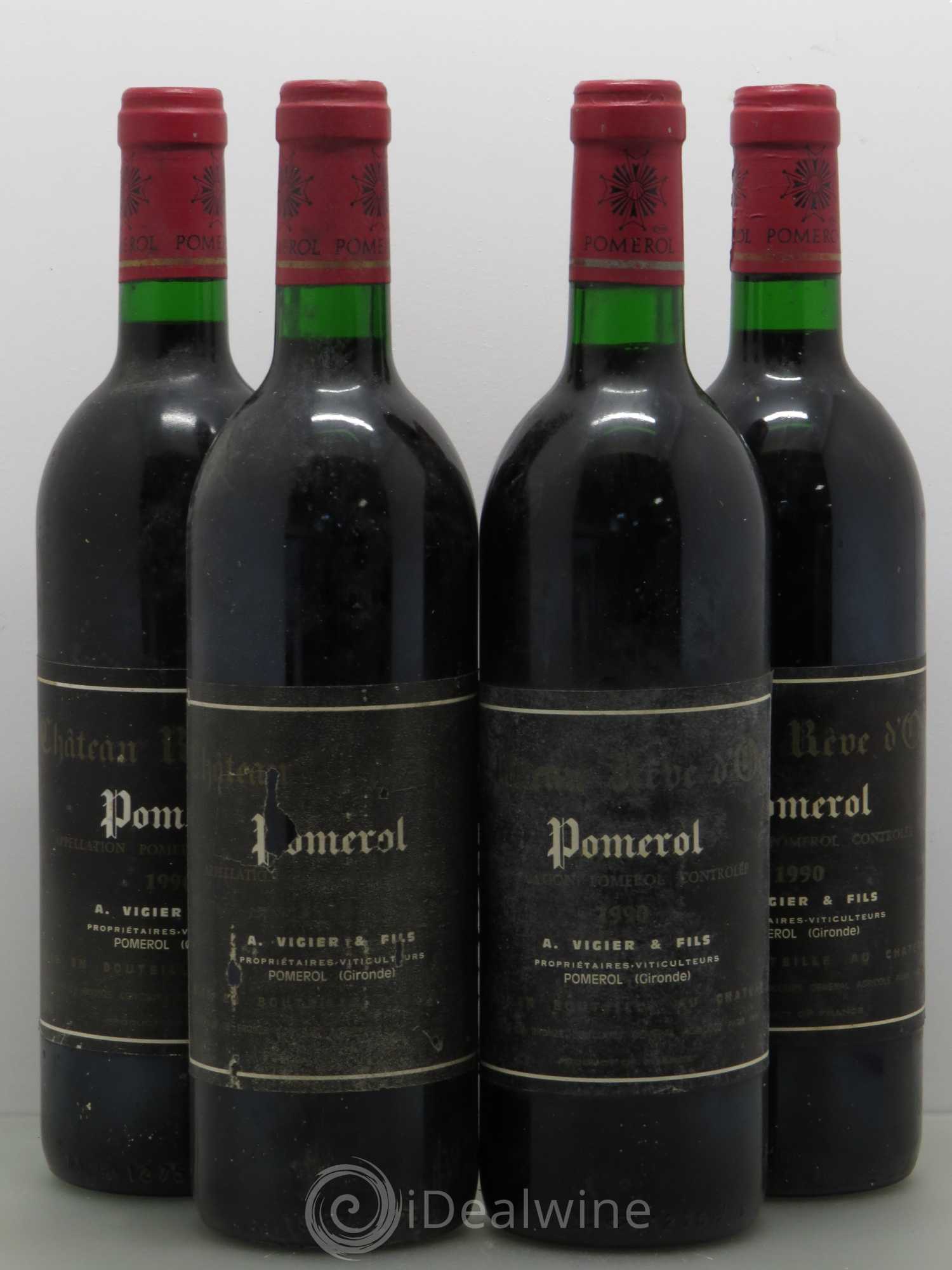 Plus d'infosQuantité : 4 bouteillesObservations : 2 Étiquettes légèrement marquées, 2 Étiquettes marquées, 3 Étiquettes très légèrement abimées, 1 Étiquette légèrement abiméeNiveaux : 3 Base goulot, 1 NormalProvenance : particulierTVA récupérable : nonRégion : BordeauxAppellation : PomerolPropriétaire : Maurice Vigier