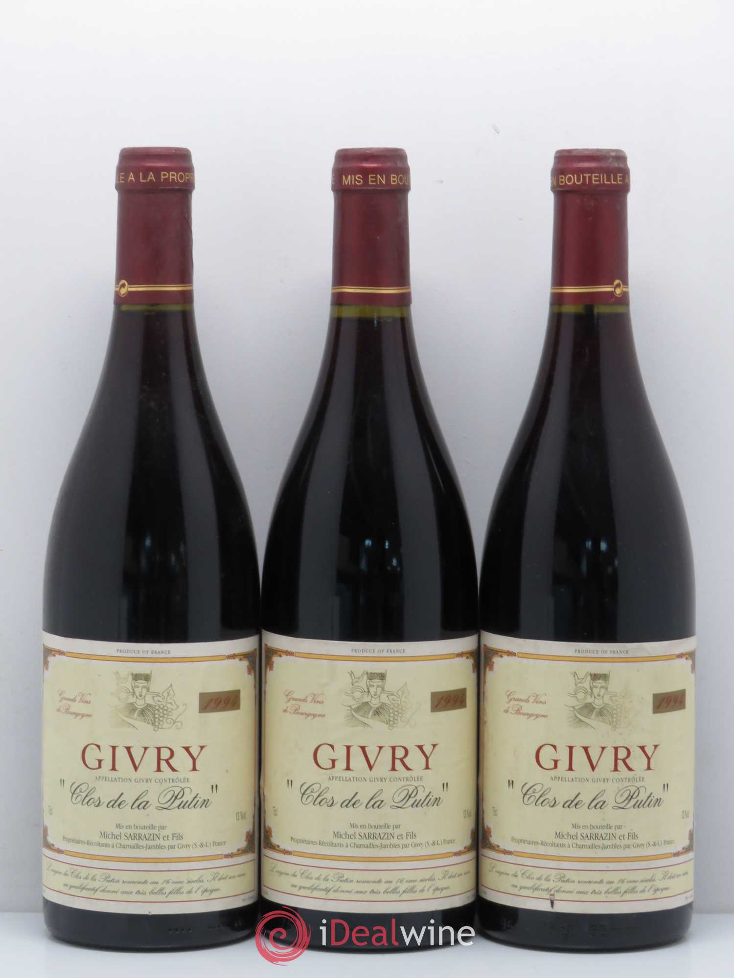 Accueil / Acheter vins / Bourgogne / Givry Clos De La Putin Michel Sarrazin 1994 - Lot de 3 bouteilles