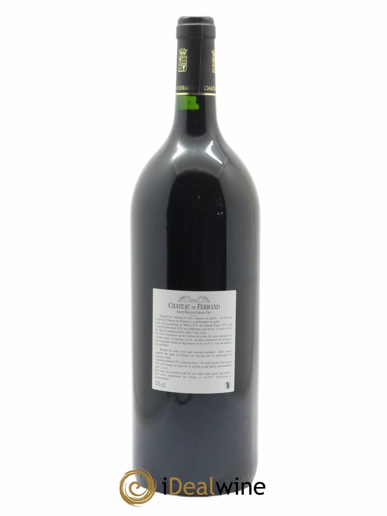 Plus d'infosPropriété historique de Saint-Emilion, le château de Ferrand signe ici une cuvée issue d’un savant assemblage de merlot, de cabernet franc et de cabernet sauvignon (ce dernier cépage est ajouté en quantité minime lorsque les baies sont d'une qualité suffisante pour le château, selon le millésime). En cave, les baies sont vinifiées de façon parcellaire. La vinification est réalisée en cuve béton thermorégulée. Après une fermentation malolactique partielle en barriques, le vin est ensuite élevé pendant 14 à 18 mois en barriques, avec un équilibre de bois neuf et de tonneaux de plusieurs vins.