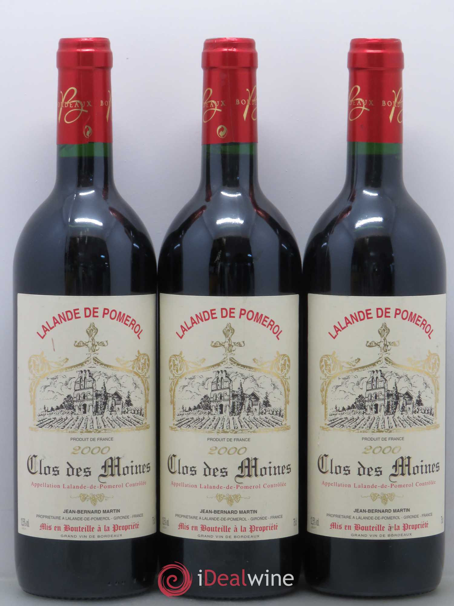 Bordeaux Clos des Moines - Lalande de Pomerol (sans prix de réserve) 2000 - Lot de 3 bouteilles - 0