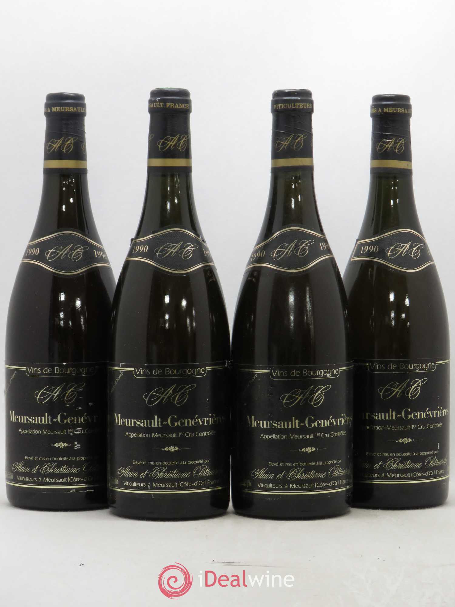 Accueil / Acheter vins / Bourgogne / Meursault 1er Cru Genevrières Domaine Alain et Christiane Patriarche 1990 - Lot de 4 bouteilles