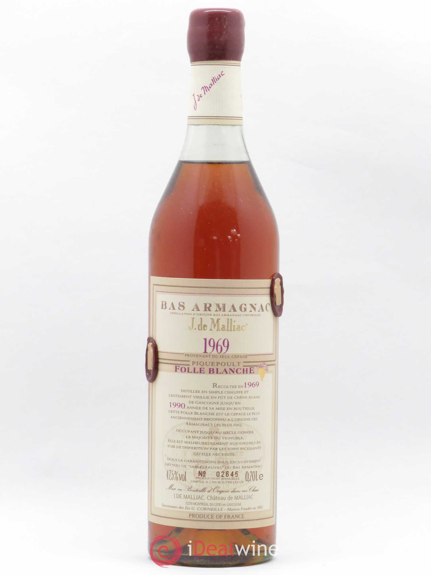 Bas-Armagnac J de Malliac Piquepoult Folle Blanche 1969