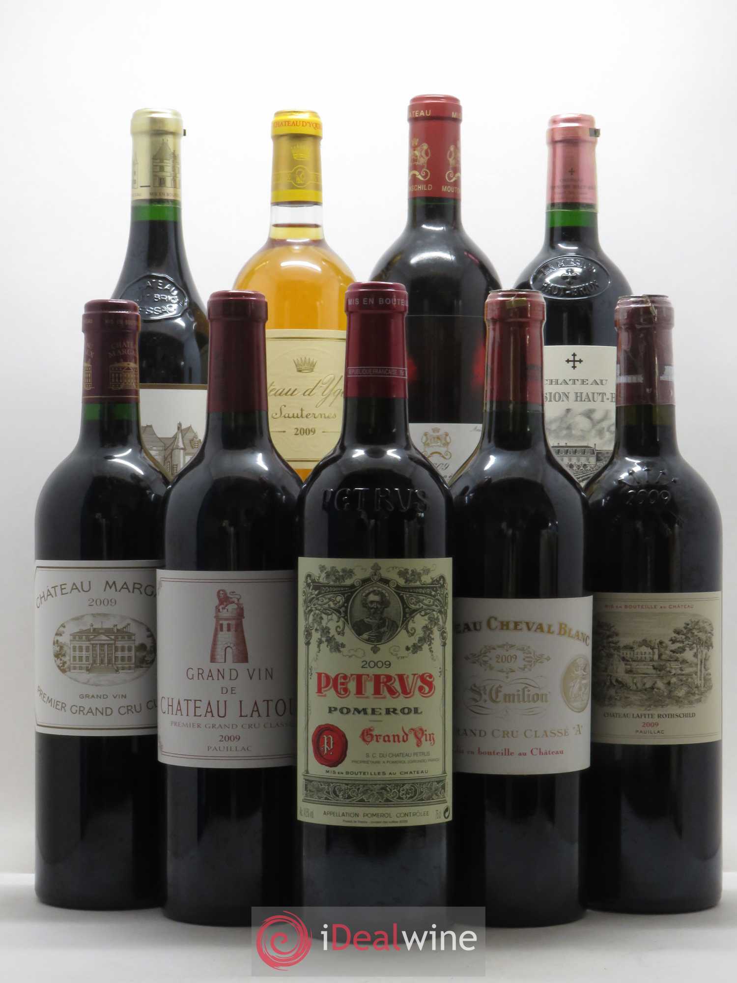 La Caisse Collection Duclot (9 bouteilles) est composée des vins suivants, dans le millésime 2009 : Petrus (1 bouteille), Château d'Yquem (1 bouteille), Château Cheval Blanc (1 bouteille), Château Lafite Rothschild (1 bouteille), Château Latour (1 bouteille), Château Margaux (1 bouteille), Château Mouton Rothschild (1 bouteille), Château Haut-Brion (1 bouteille), Château La Mission Haut-Brion (1 bouteille). Pour plus d'information sur ce lot, veuillez contacter le service client.