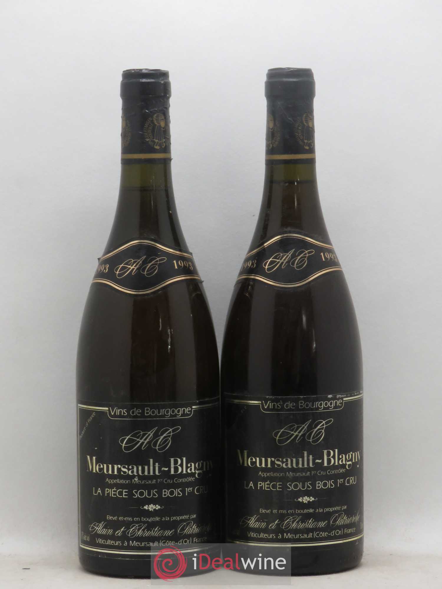 Accueil / Acheter vins / Bourgogne / Meursault 1er Cru Blagny La Pièce sous Bois Alain et Christiane Patriarche 1993 - Lot de 2 bouteilles