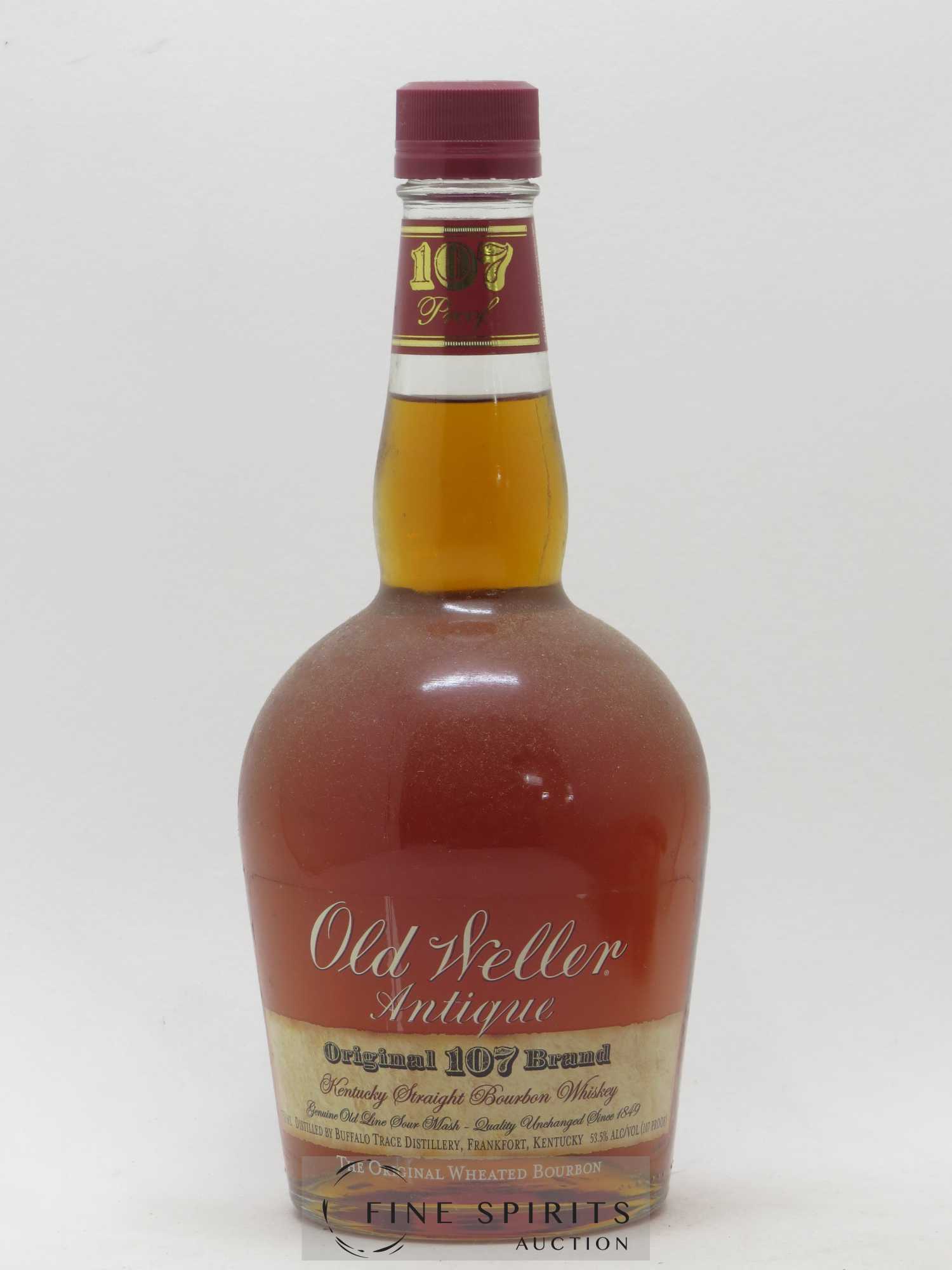 Weller Antique 107 est un wheated bourbon c'est-à-dire un bourbon dont la deuxième céréale est du blé et non du seigle comme c'est souvent le cas. 107 désigne ici le degré : 107 proof soit 53,5%. Le Weller Antique 107 était un 7 ans mais cette précision a été abandonnée. La marque était initialement produite à la distillerie Stitzel-Weller, vendue en 1972 par Julian Van Winkle II. Elle passe à Distillers Company Limited en 1984 qui augmente sensiblement ses capacités de production avant de la fermer en 1992 au profit de Bernheim, refaite à neuf. A la fin du siècle, DCL - devenue entre temps United Distillers puis Diageo - vend le stock de Stitzel-Weller et la marque au groupe Sazerac qui la produit toujours dans sa distillerie Buffalo Trace.