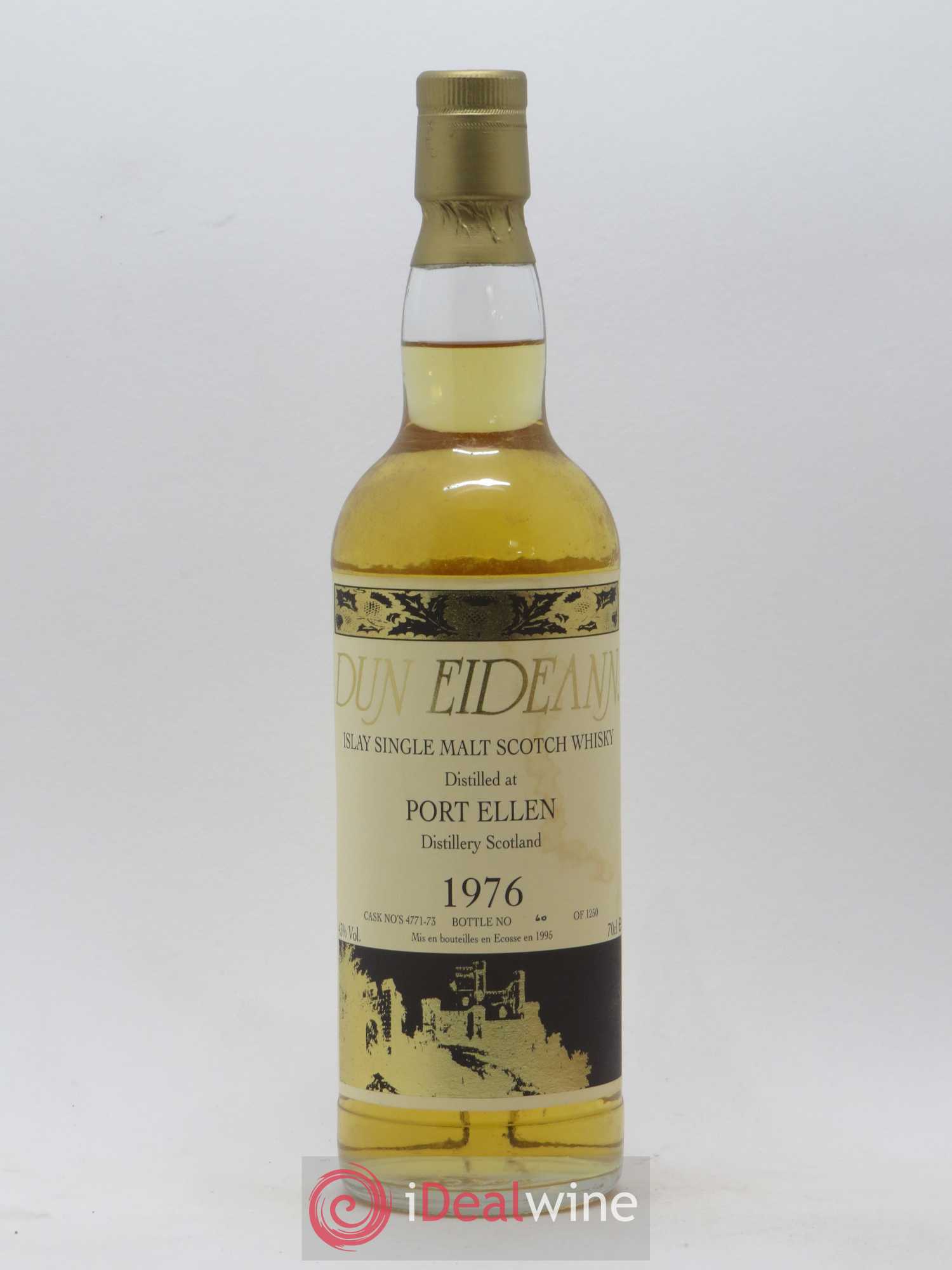 Ardbeg 1976 embouteillé en 1995 par Signatory Vintage dans la gamme Dun Eideann. C'est un assemblage de plusieurs fûts : #4771/73. Signatory Vintage a été fondé en 1988 par Andrew Symington qui a commencé son activité au Prestonfield House d'Édimbourg où il sélectionne des fûts spécialement pour l'hôtel. En 2002, il fait l'acquisition de la distillerie Edradour, à Pitlochry dans les Highlands. Il y relocalise aussi Signatory Vintage dont les chais font face à la distillerie. La gamme Dun Eideann (Édimbourg en gaélique) permettait à Andrew Symington de vendre à des distributeurs différents dans un même pays comme La Maison du Whisky, qui distribuait Signatory Vintage, et Auxil, qui distribuait Dun Eideann, en France ou Velier et Donato en Italie. Edition limitée à 1 250 bouteilles.