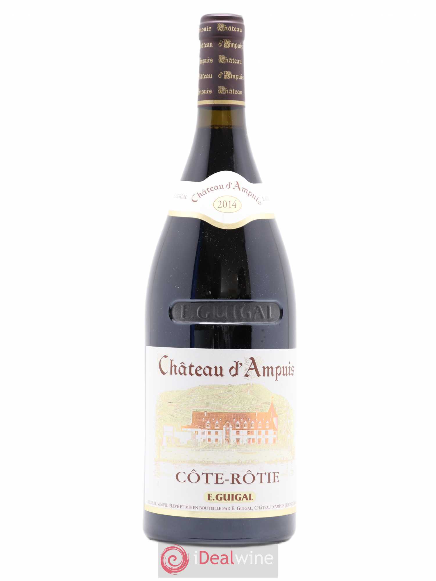 Elaborée depuis le millésime 1995, la cuvée Château d'Ampuis porte le nom d'une propriété acquise et rénovée par Marcel Guigal. Figurant parmi les « Trésors » de la maison Guigal, elle est issue de vignes d'un âge moyen de 35 à 40 ans, implantées sur sept terroirs d'exception en Côte-Rôtie. Les vendanges, les plus tardives possibles, sont suivies d'une période de fermentation en cuves inox, puis d'un élevage de 38 mois en fûts de chêne neuf. Le Château d'Ampuis présente une robe sombre et très profonde. Ce vin tannique et racé développe au nez des arômes d'épices, de petits fruits rouges, suivis en bouche de saveurs de pruneaux, de mûre et de vanille. D'une belle ampleur, nous percevons combien l'élevage intègre les tanins.