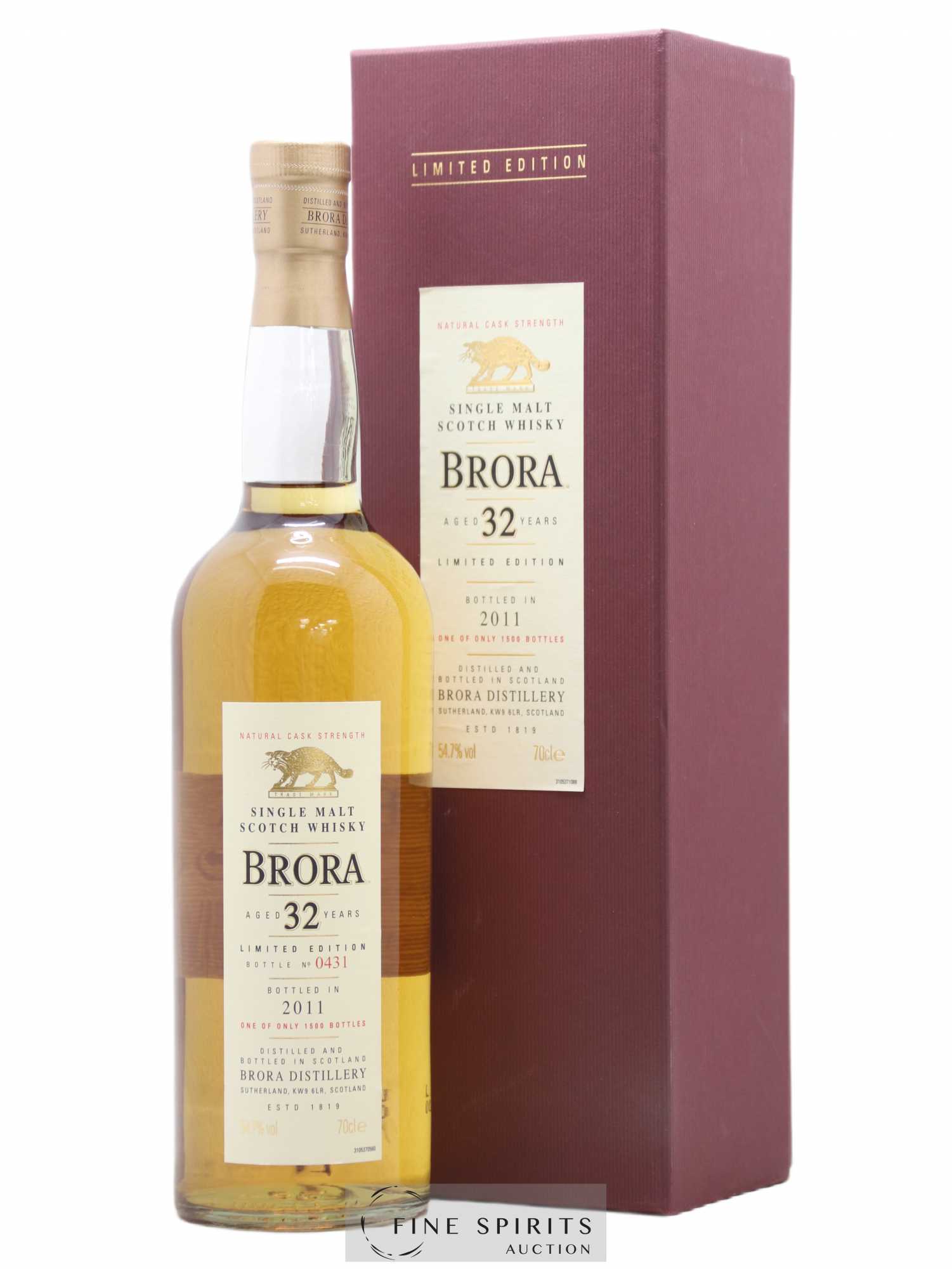 Brora 32 ans embouteillé brut de fût en 2011 dans les Special Releases de Diageo, une gamme annuelle qui met en valeur certains des plus beaux whiskies issus des distilleries ouvertes ou fermées du groupe. La première édition de Brora dans cette gamme date de 2002 et la dernière de 2017. Au moment de sortie, ce Brora était l'embouteillage officiel le plus âgé de la distillerie. Edition limitée à 1 500 bouteilles.