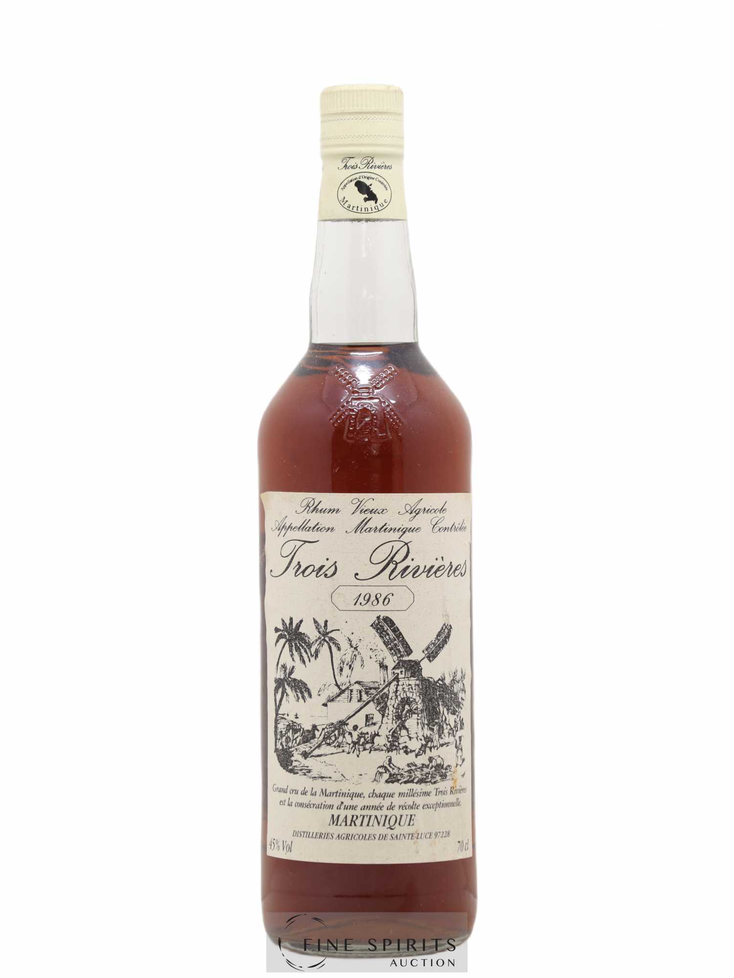 Rhum agricole de Martinique Trois Rivière distillé en 1986, à Sainte-Luce où se trouvent également les champs de canne et le célèbre moulin qu'on retrouve sur les étiquettes de Trois Rivières. En 2004, le matériel de distillation est démonté et remonté à Rivière Pilote où il se trouve toujours aujourd'hui.