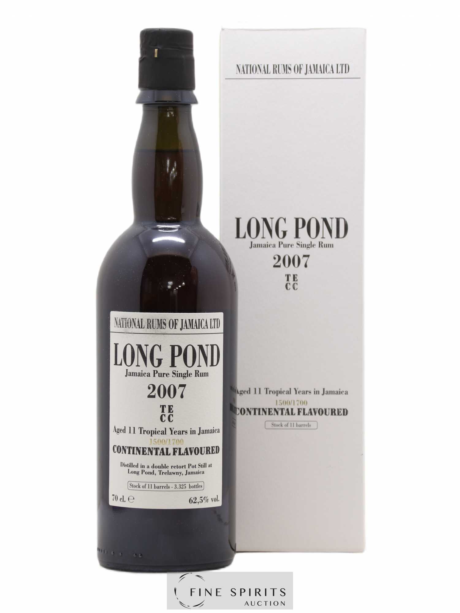 Long Pond distillé en 2007 et embouteillé après 11 ans d'élevage dans la gamme National Rums of Jamaica par La Maison & Velier, un partenariat entre La Maison du Whisky et l'importateur et négociant génois Velier. Il appartient à la catégorie "Continental Flavoured" (taux d'ester entre 700 et 1 600 g/HPA) et porte la marque TECC (entre 1 500 et 1 700 h/HPA). Assemblé à partir de onze fûts, cette cuvée est limitée à 3 325 bouteilles, la part des anges s'élevant à 57%. Plusieurs embouteillages de Long Pond étaient sortis dans cette série, montrant la diversité de styles dont la distillerie est capable.