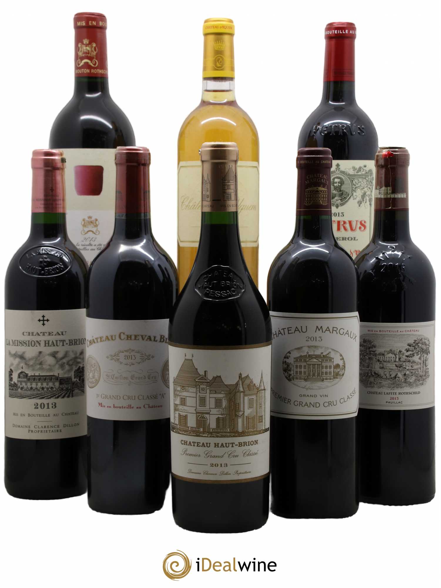 La Caisse Collection Duclot (8 bouteilles) est composée des vins suivants, dans le millésime 2013 : Petrus (1 bouteille), Château d'Yquem (1 bouteille), Château Cheval Blanc (1 bouteille), Château Lafite Rothschild (1 bouteille), Château Margaux (1 bouteille), Château Mouton Rothschild (1 bouteille), Château Haut-Brion (1 bouteille), Château La Mission Haut-Brion (1 bouteille). Pour plus d'information sur ce lot, veuillez contacter le service client.