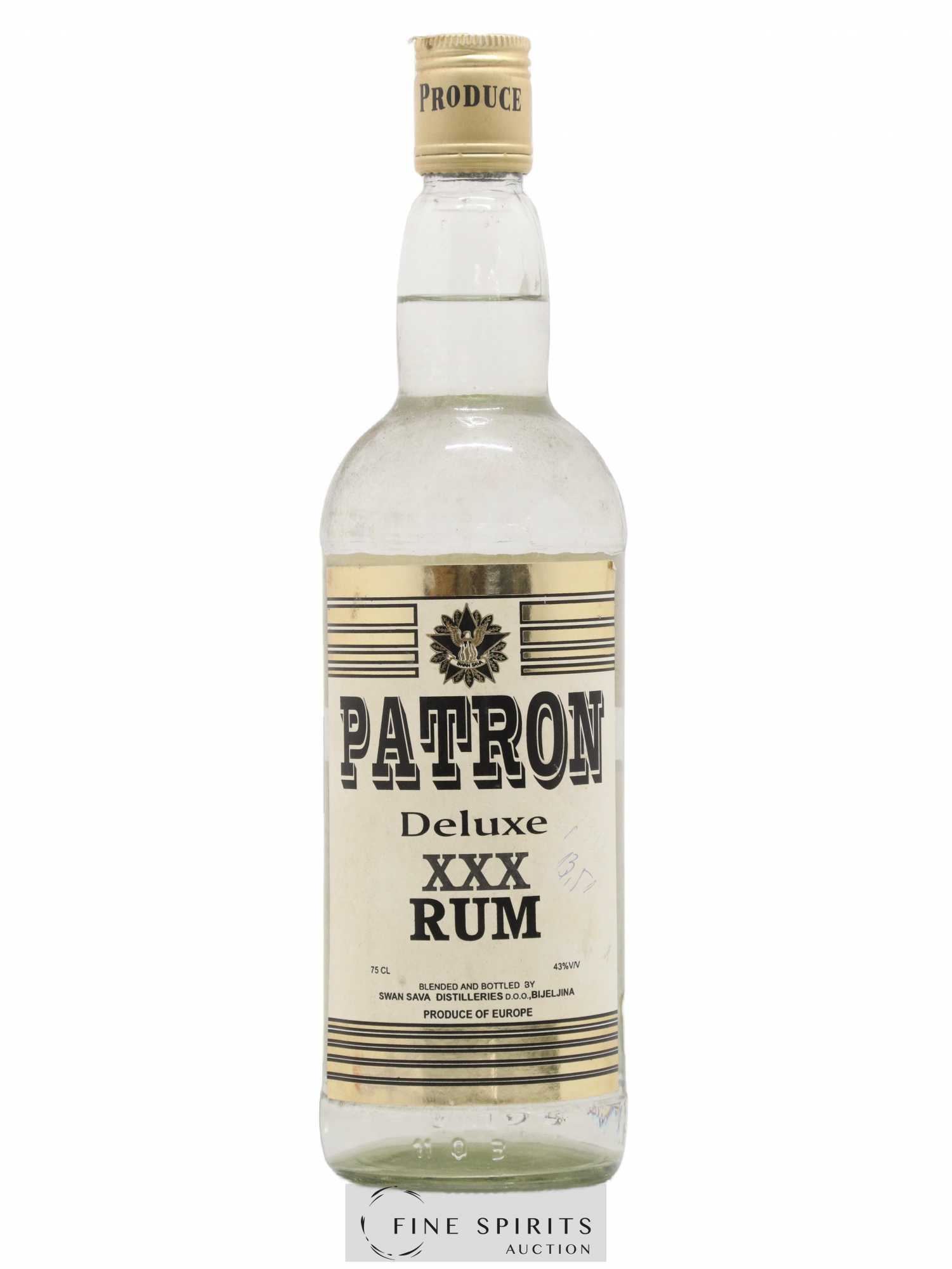 Rhum blanc Patron Deluxe XXX produit par Swan Sava Distillers à Bijeljina, en Bosnie-Herzégovine.