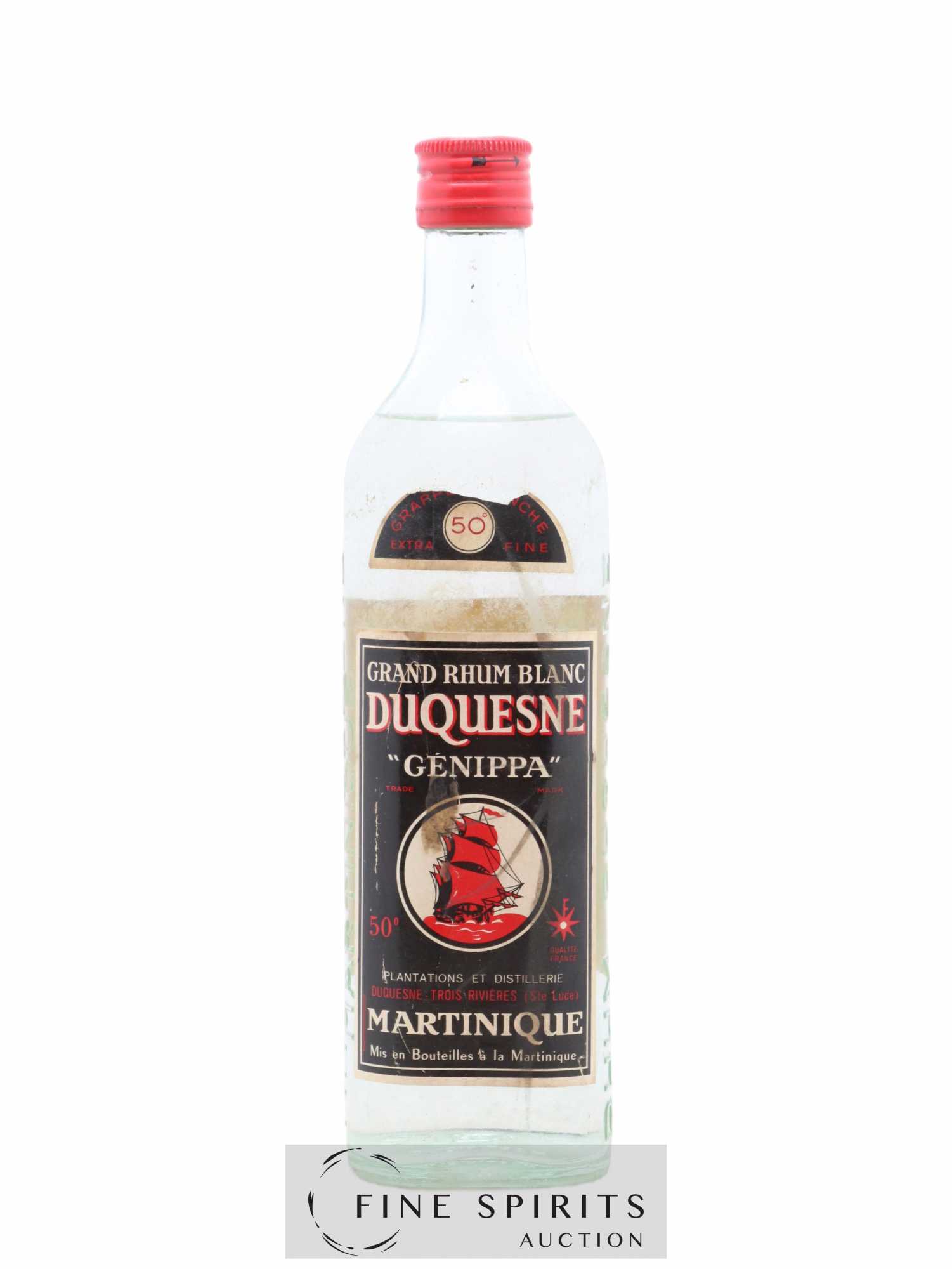 Rhum blanc de Martinique Duquesne embouteillé dans les années 1960. La distillerie Duquesne appartenait à la famille Marraud des Grottes qui y produisait la marque éponyme jusqu'au déménagement de son alambic à colonne à La Mauny en 2004. C'est désormais là-bas que la marque continue d'être produite.