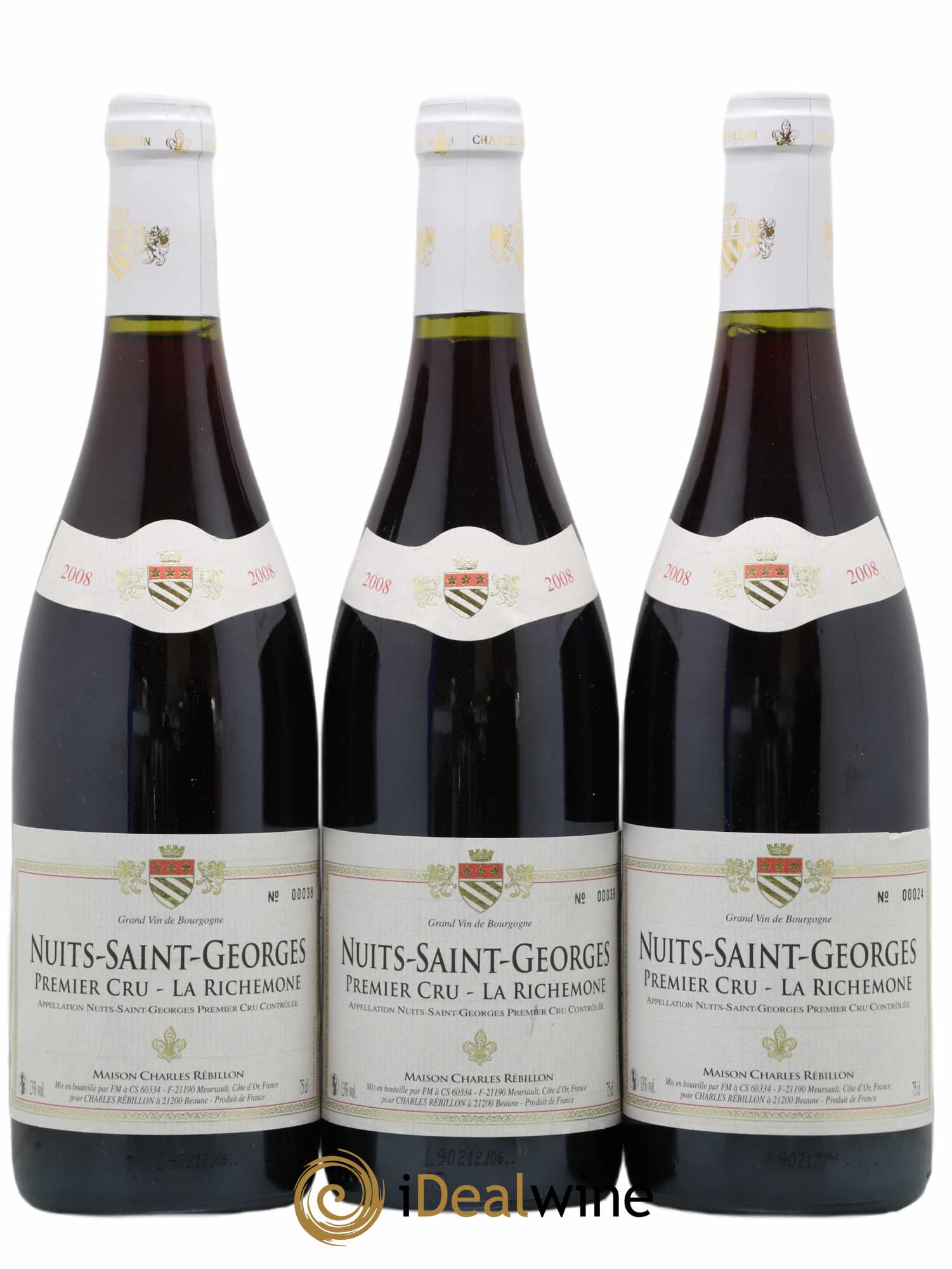 Nuits-Saint-Georges 1er Cru La Richemone Charles Rebillon (sans prix de réserve) 2008 - Lot de 3 bouteilles - 0