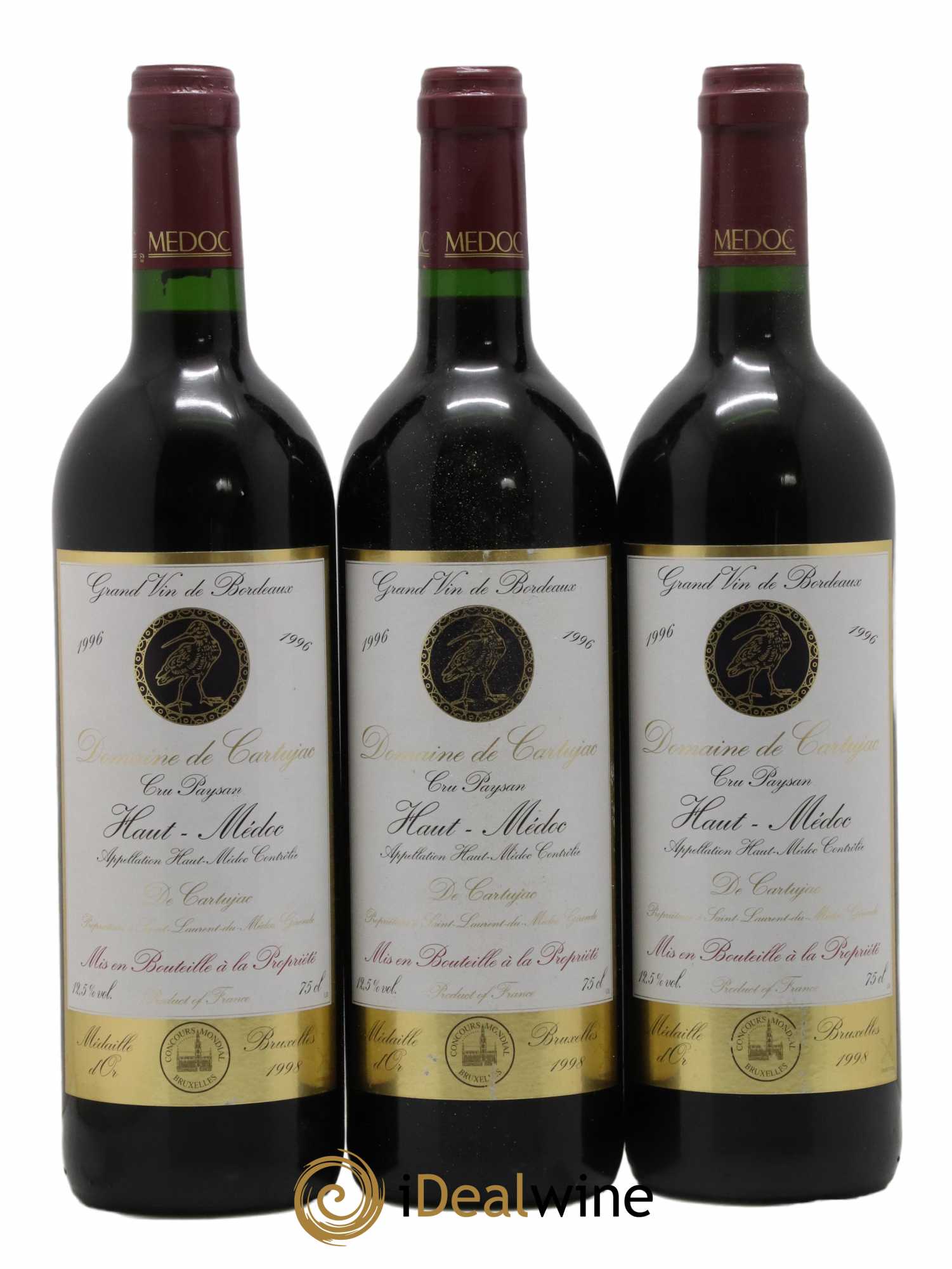 Haut Médoc Domaine de Cartujac (sans prix de réserve) 1996 - Lot de 3 bouteilles - 0