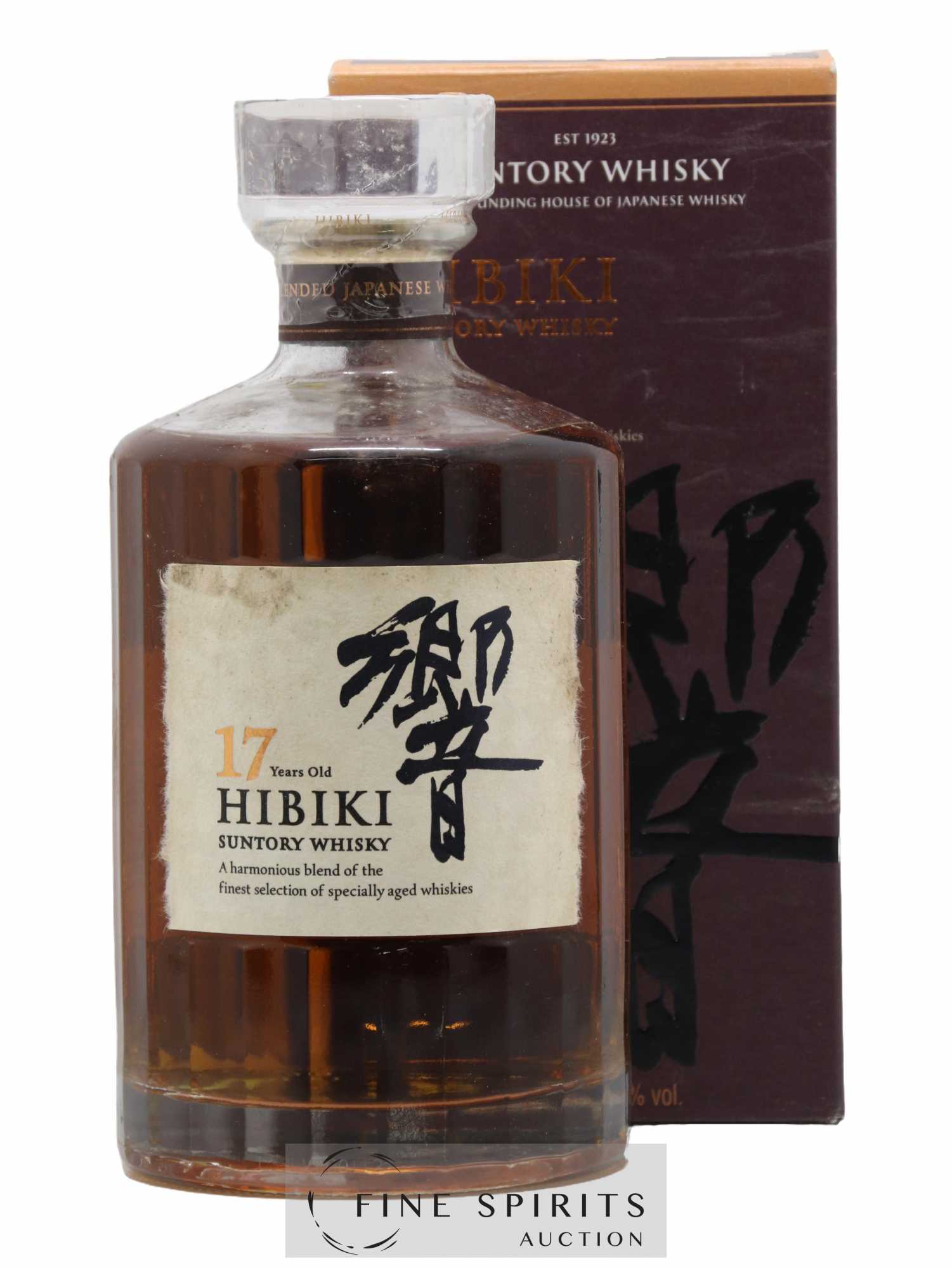 Hibiki 17 ans a été conçu pour célébrer les 90 ans de Suntory en 1989 par le Master Blender Keizo Saji et le Chief Blender Koichi Inatomi. C'est Keizo Saji, fils et successeur du fondateur Shinjiro Torii qui en a eu l'idée en 1987. Présenté dans sa mythique bouteilles à vingt-quatre facettes - pour les vingt-quatre saisons du calendrier japonais - le Hibiki 17 ans est un assemblage de whiskies produits dans les trois distilleries du groupe : Yamazaki et Hakushu pour les whiskies de malt et Chita pour le whisky de grain. La bouteille a été rendue célèbre notamment grâce au film de Sofia Coppola, « Lost in Translation » (2003), où le personnage incarné par Bill Murray fait la promotion du Hibiki 17 ans. Il existe également un 12 ans, un 21 ans et plusieurs éditions sans mention d'âge. Suntory interrompt la production du 17 ans en 2018, faute d'avoir les stocks nécessaires pour satisfaire la demande.